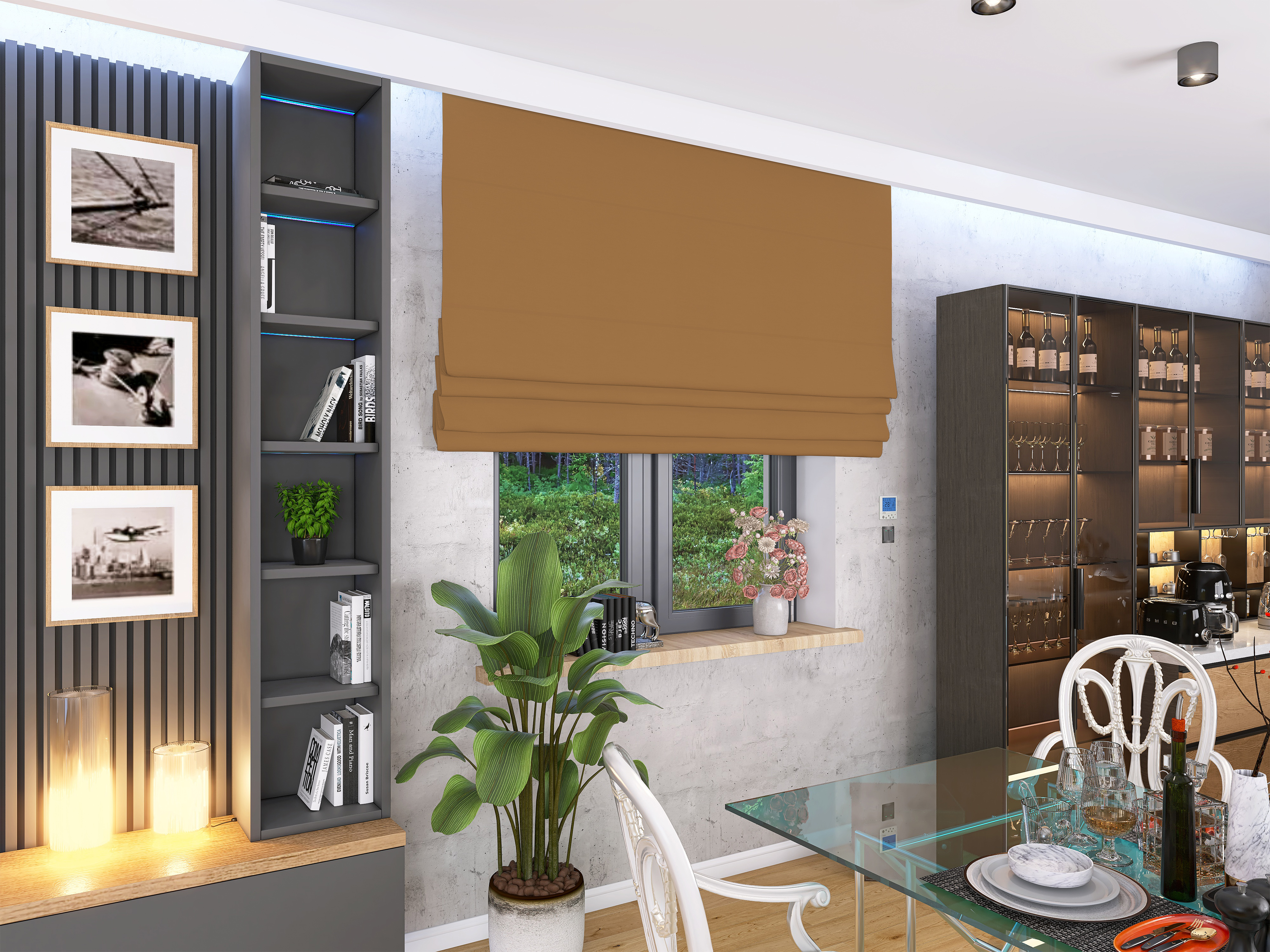 Tkanina EFE to welur poliestrowy o gramaturze 220 g/m², który subtelnie układa się i zapewnia delikatne zaciemnienie pomieszczenia na poziomie ok. 60–70%. Jej miękka, mięsista struktura, półmatowy połysk oraz delikatny meszek wprowadzają do wnętrza ciepło i przytulną atmosferę. Doskonale sprawdzi się w salonie, sypialni, jadalni, biurze czy pokoju dziecka, tworząc harmonijną i elegancką aranżację. Dzięki welurowemu wykończeniu tkanina prezentuje się niezwykle szykownie również w przestrzeniach komercyjnych – hotelach, gabinetach kosmetycznych czy biurach reprezentacyjnych.