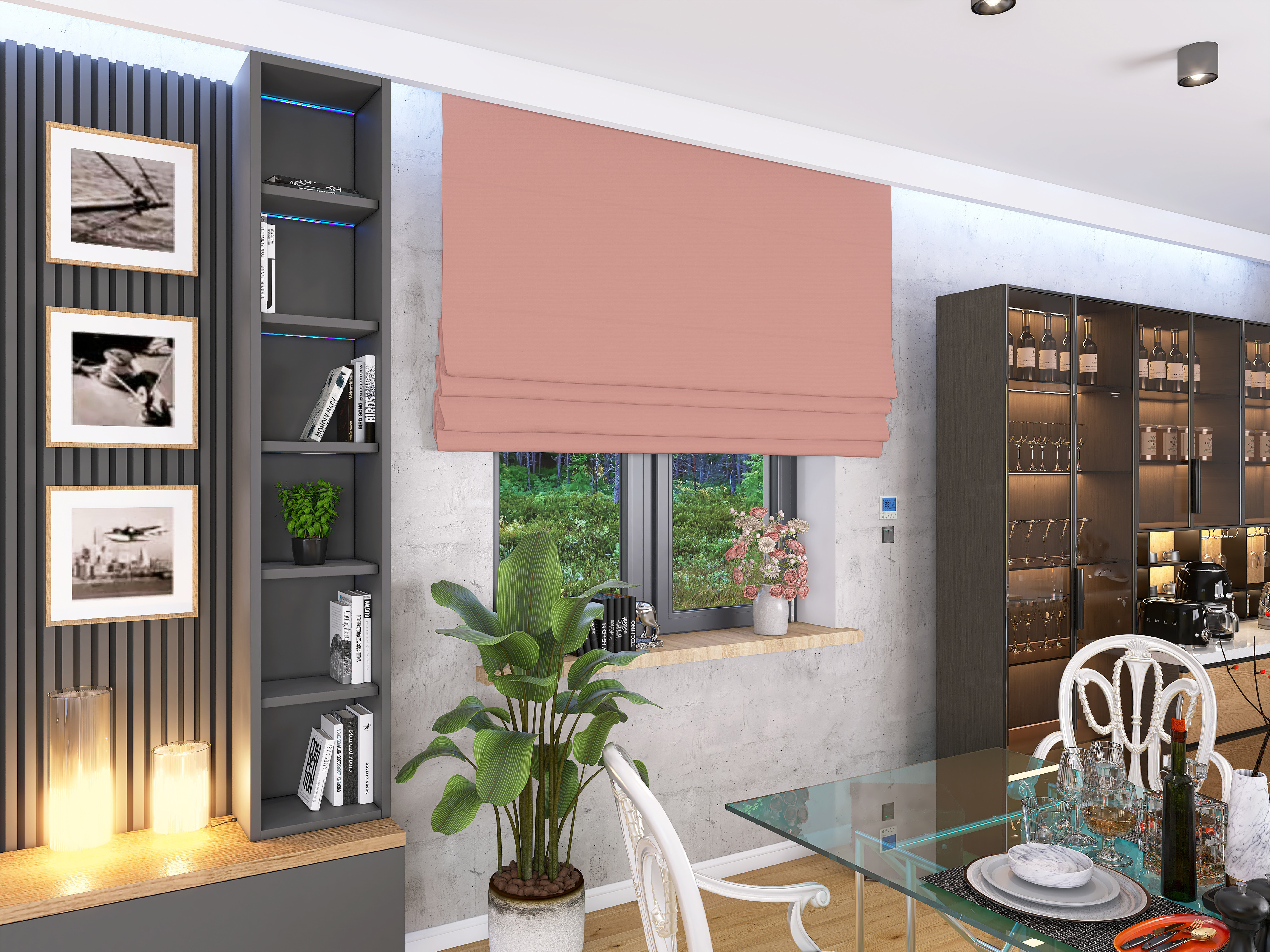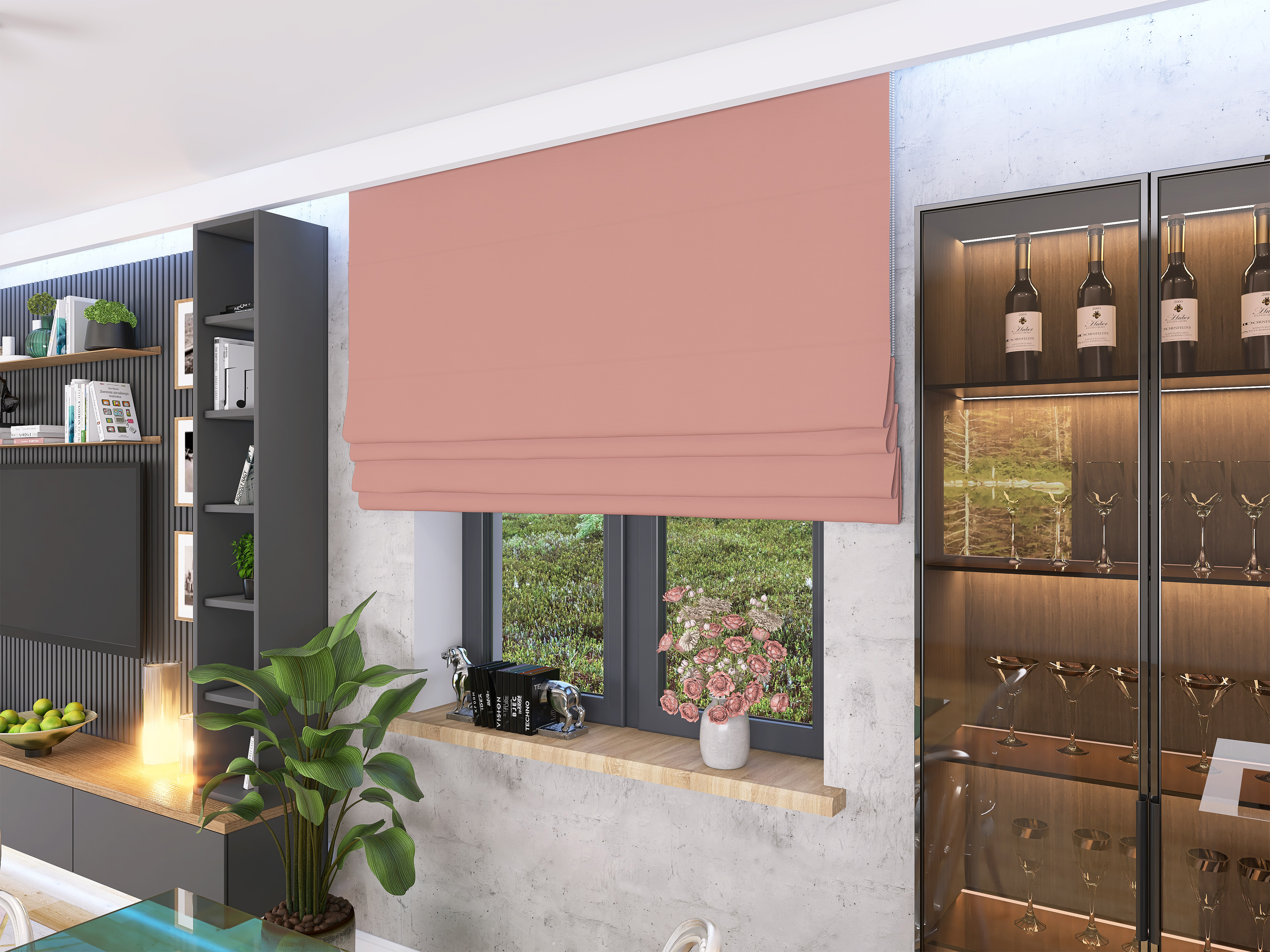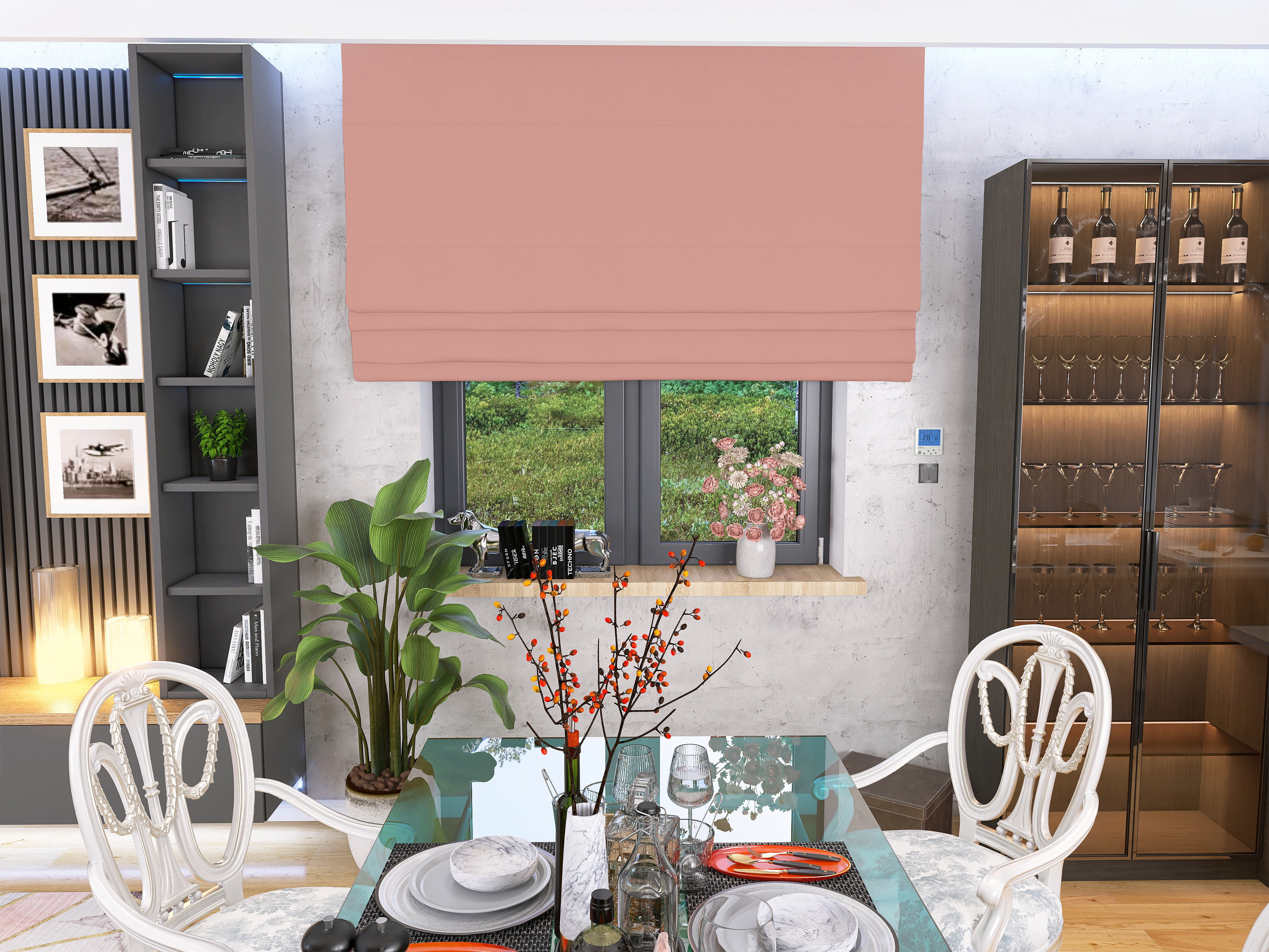 Tkanina EFE – welur poliestrowy o gramaturze 220 g/m². Zapewnia delikatne zaciemnienie (ok. 60–70%), pięknie się układa i nadaje wnętrzu ciepły, przytulny charakter. Sprawdzi się w salonie, sypialni, pokoju dziecka, a także w przestrzeniach komercyjnych, takich jak hotele czy gabinety kosmetyczne.