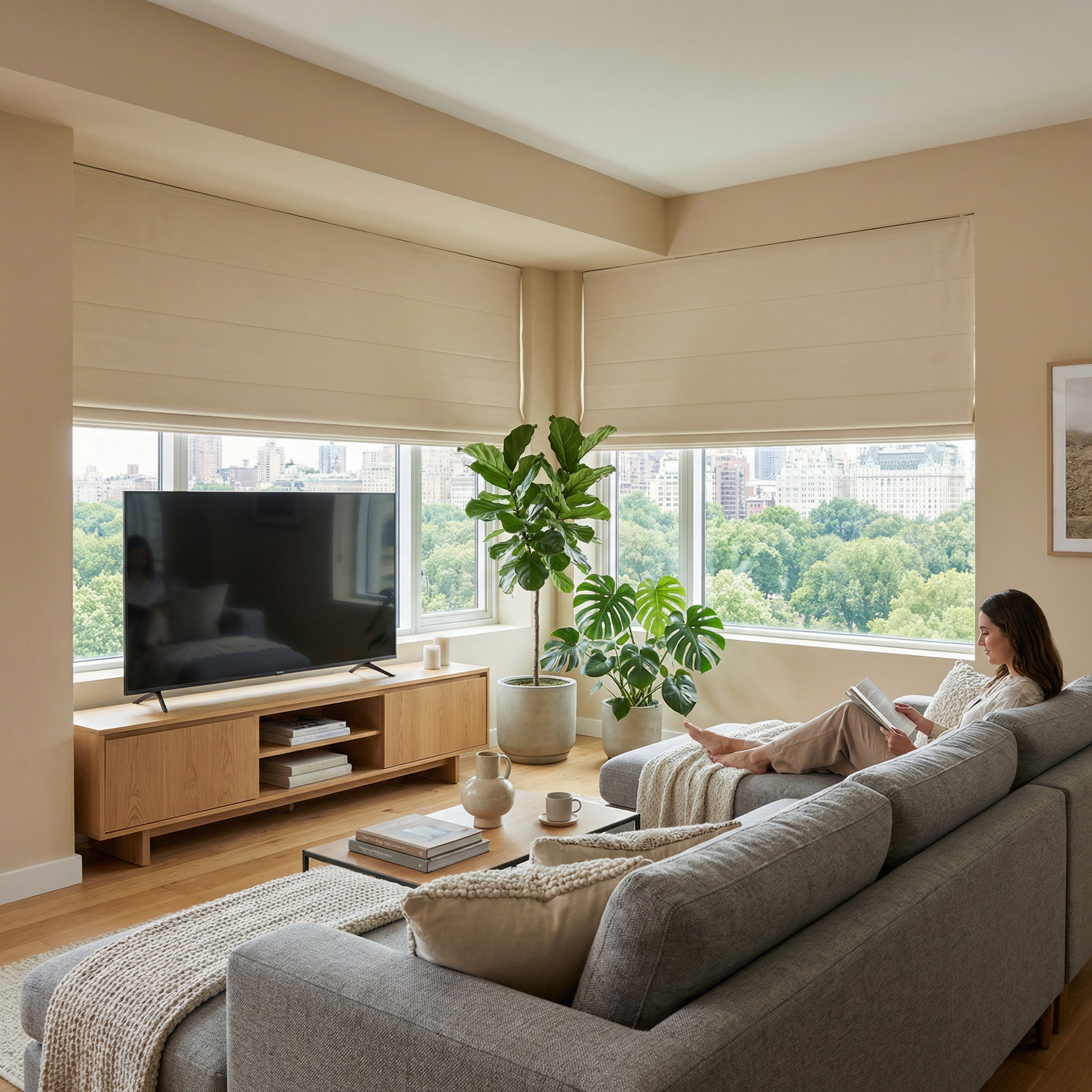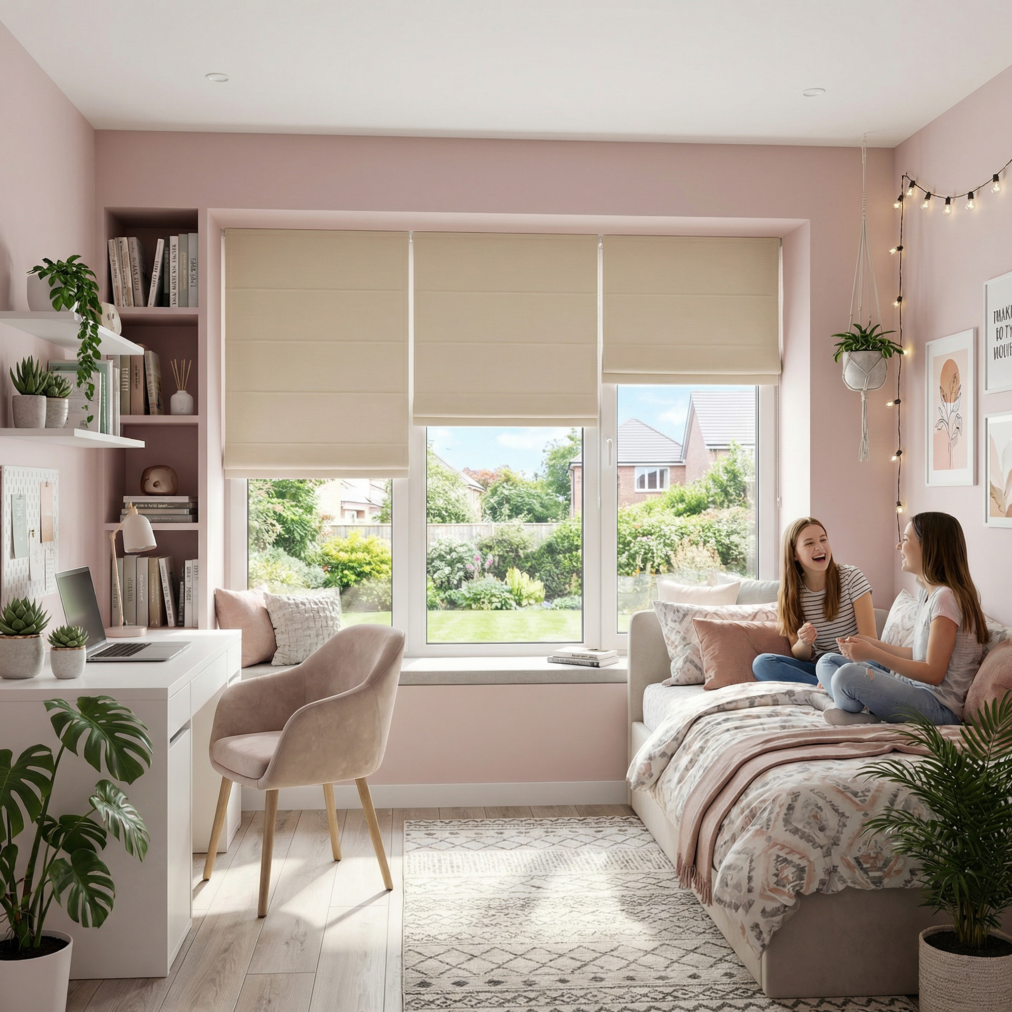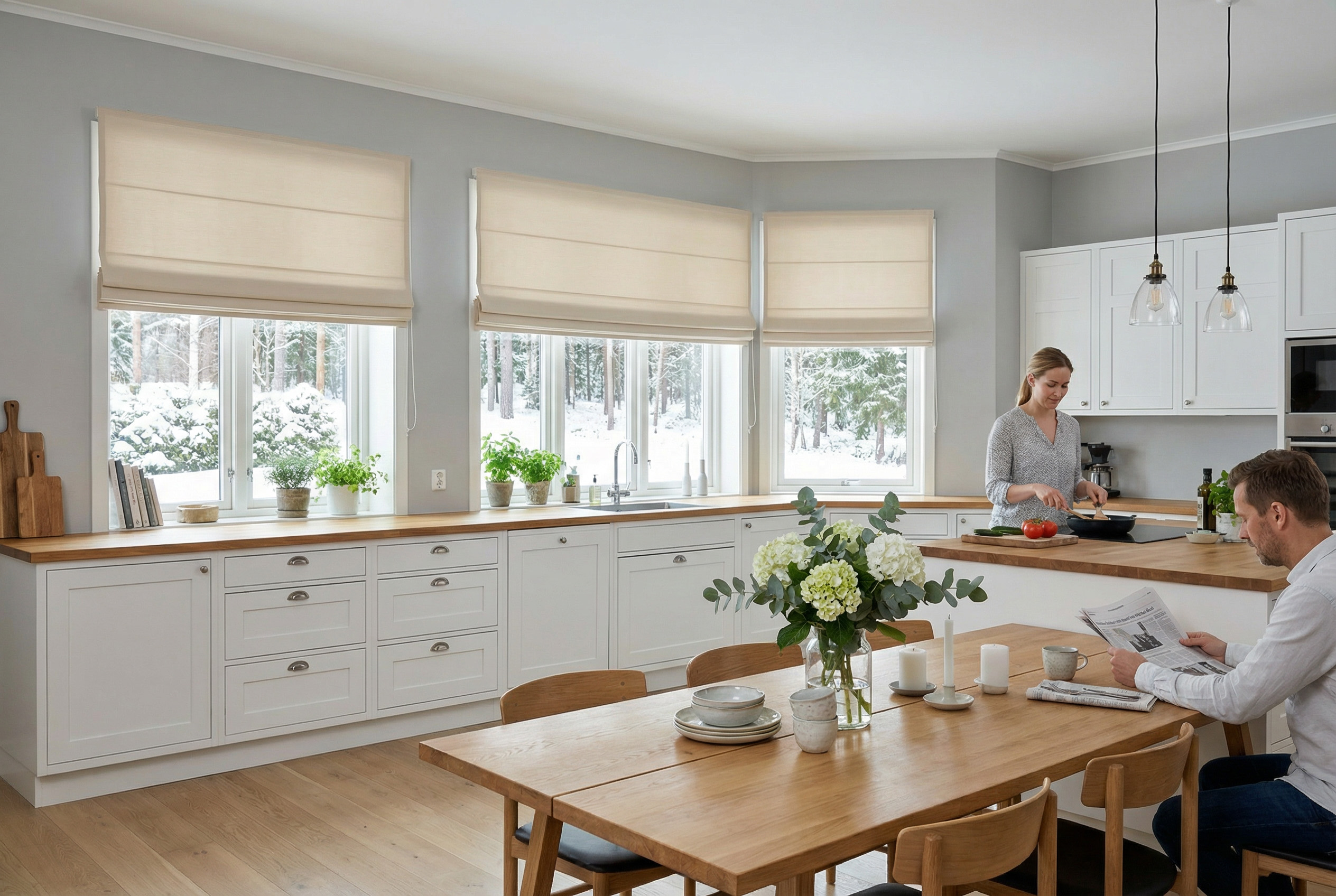 Tkanina tunelowa 7710 – lekko prążkowany poliester w 14 kolorach, z gotowymi tunelami i pętelkami. Delikatnie przepuszcza światło, nie płowieje i świetnie sprawdza się w roletach rzymskich tunelowych.