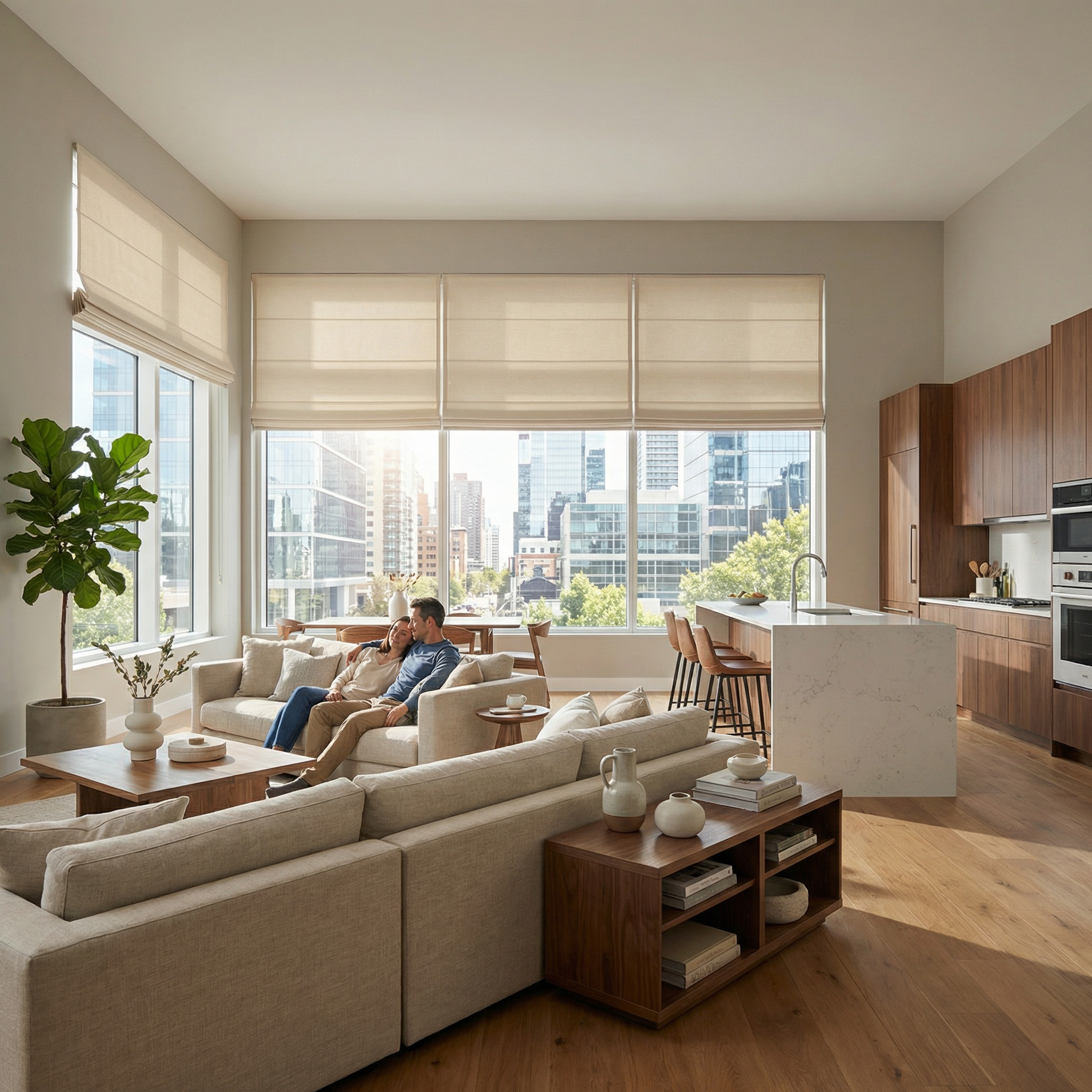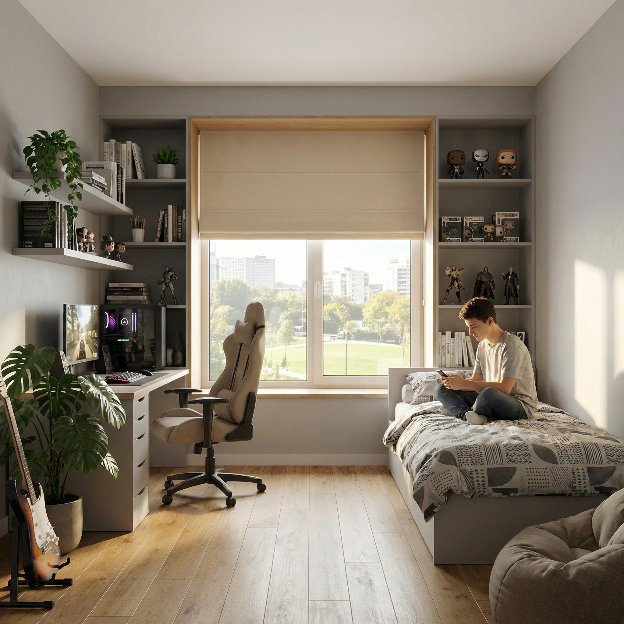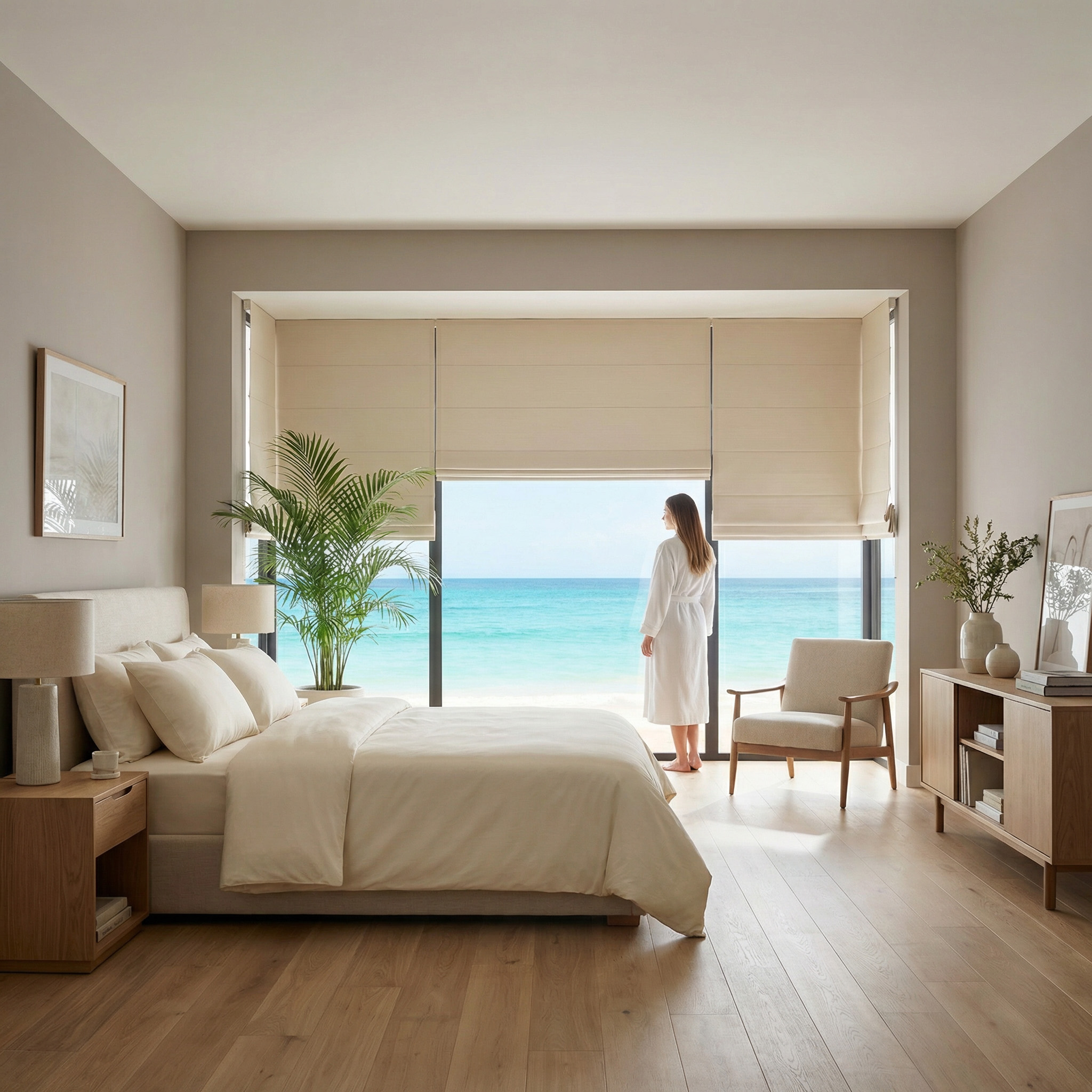 Tkanina tunelowa 7710 – lekko prążkowany poliester w 14 kolorach, z gotowymi tunelami i pętelkami. Delikatnie przepuszcza światło, nie płowieje i świetnie sprawdza się w roletach rzymskich tunelowych.
