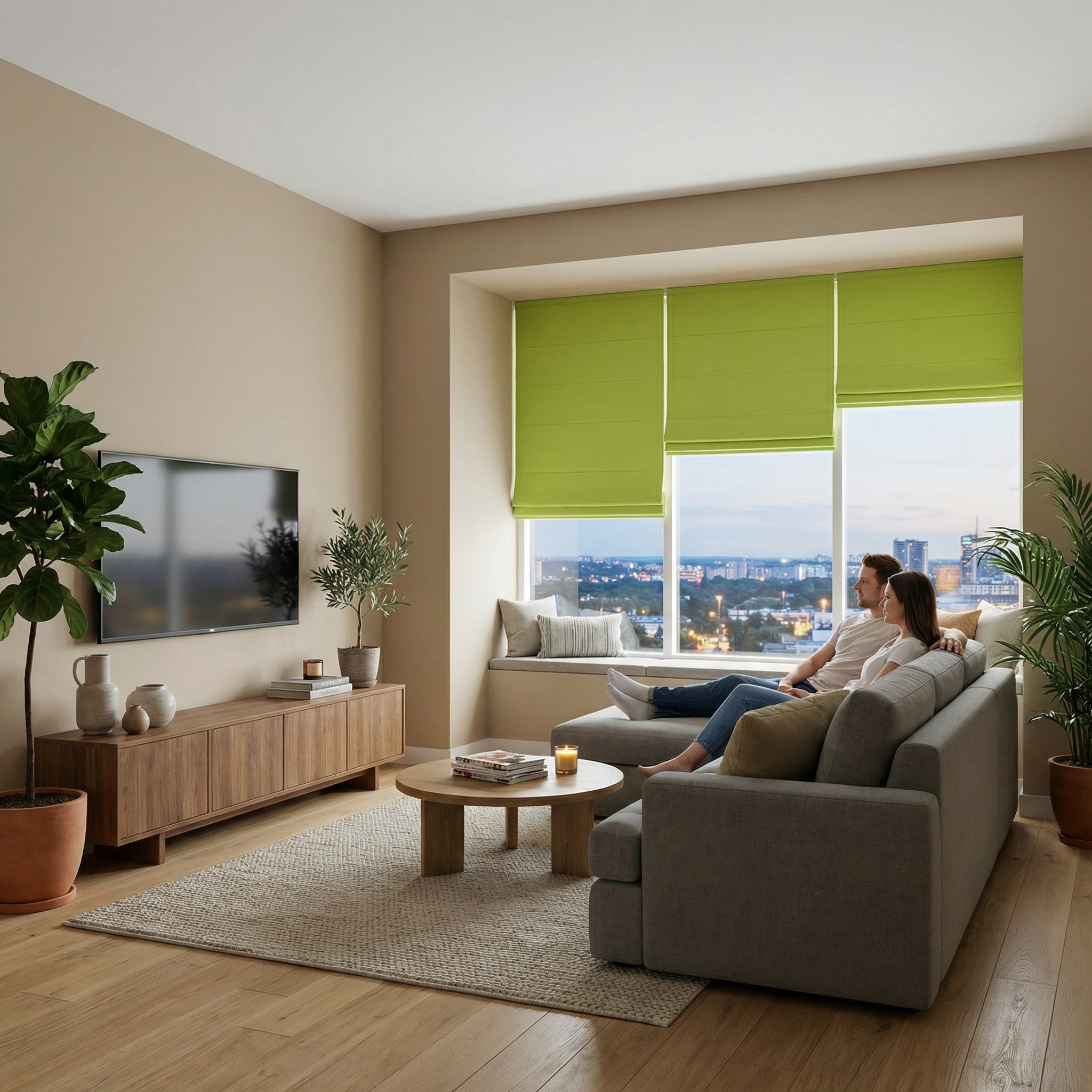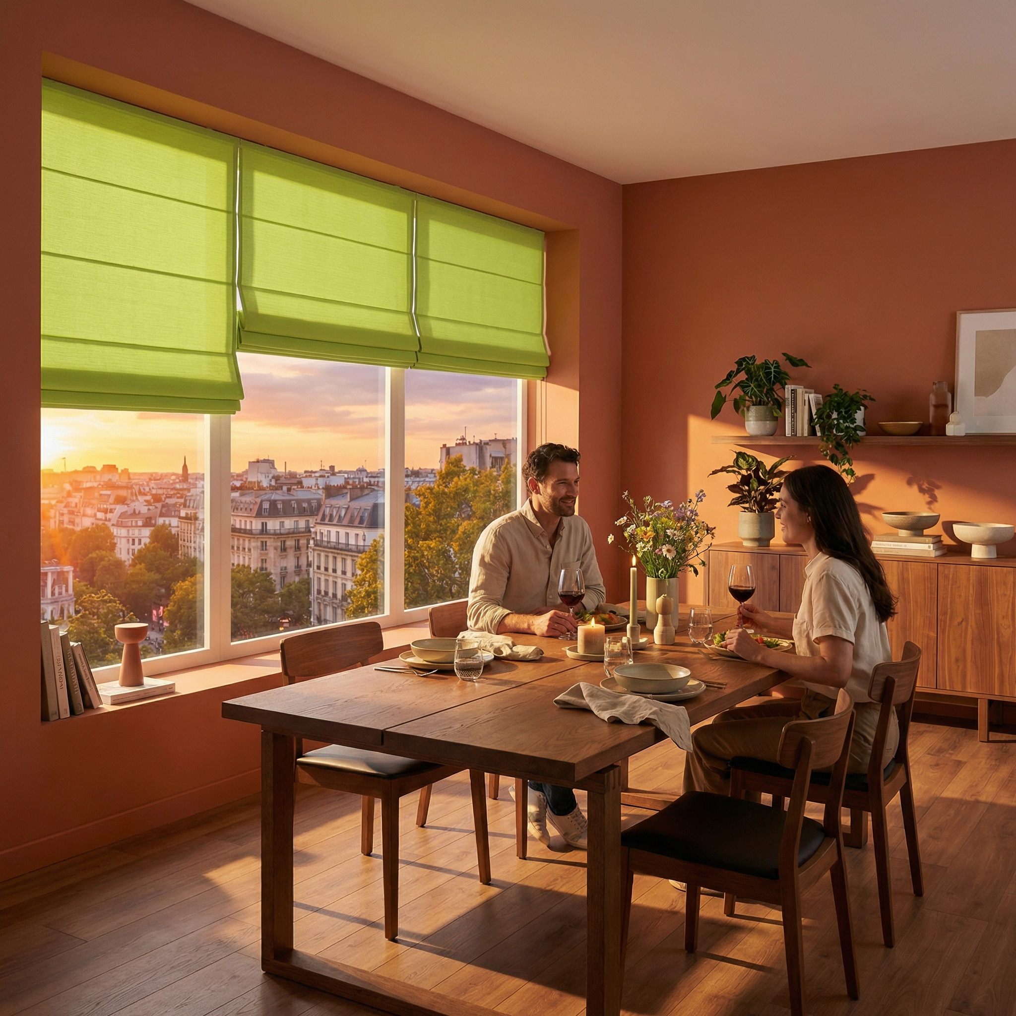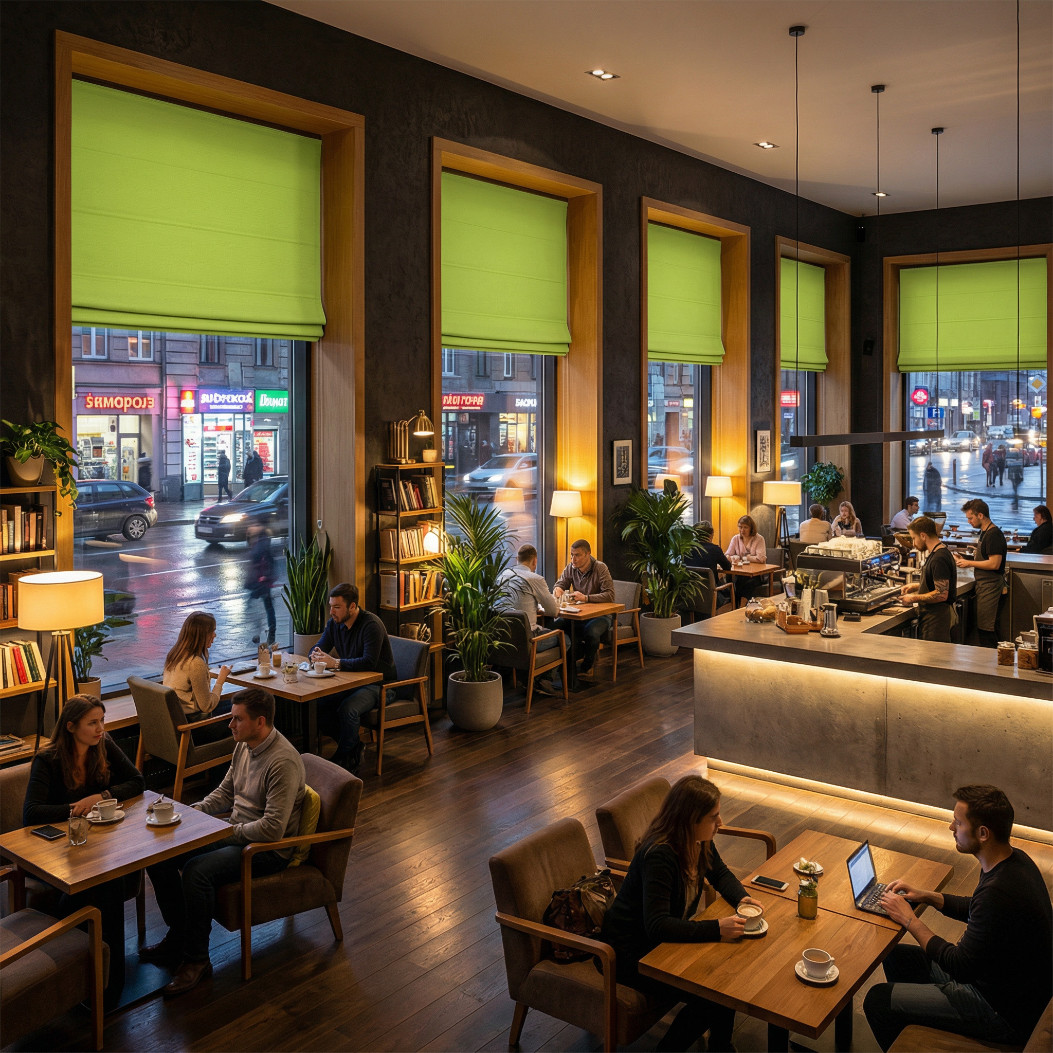 Tkanina tunelowa 7710 – lekko prążkowany poliester w 14 kolorach, z gotowymi tunelami i pętelkami. Delikatnie przepuszcza światło, nie płowieje i świetnie sprawdza się w roletach rzymskich tunelowych.