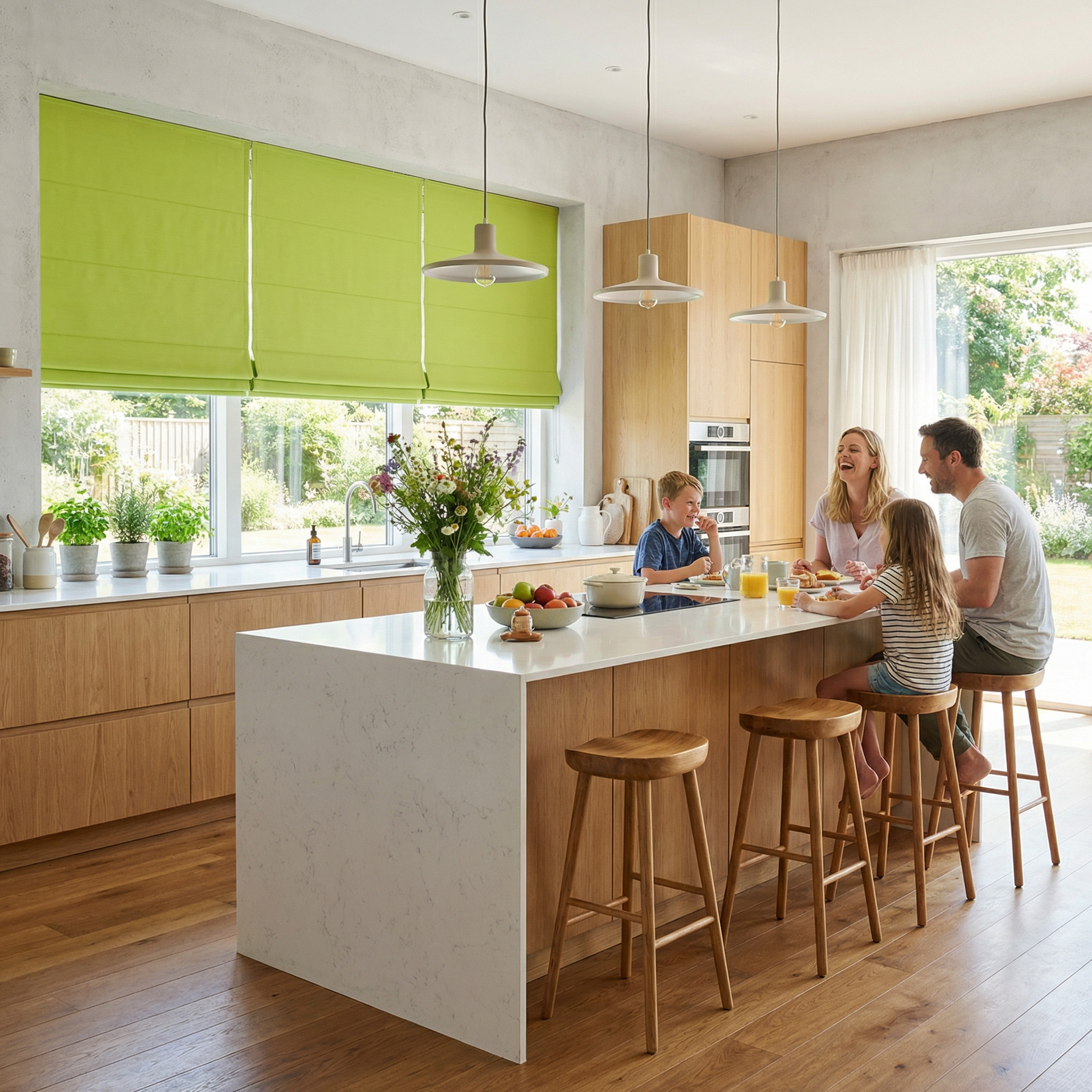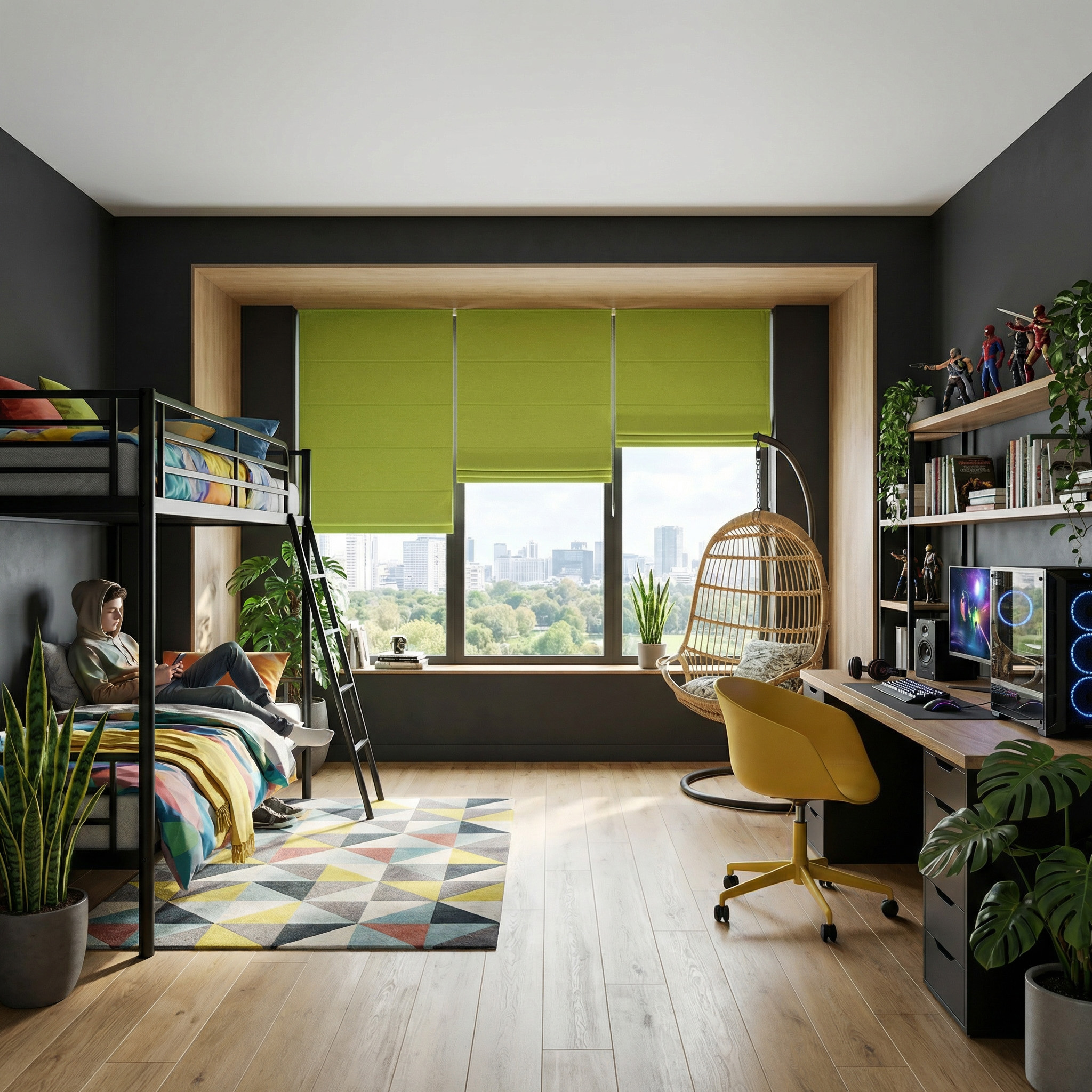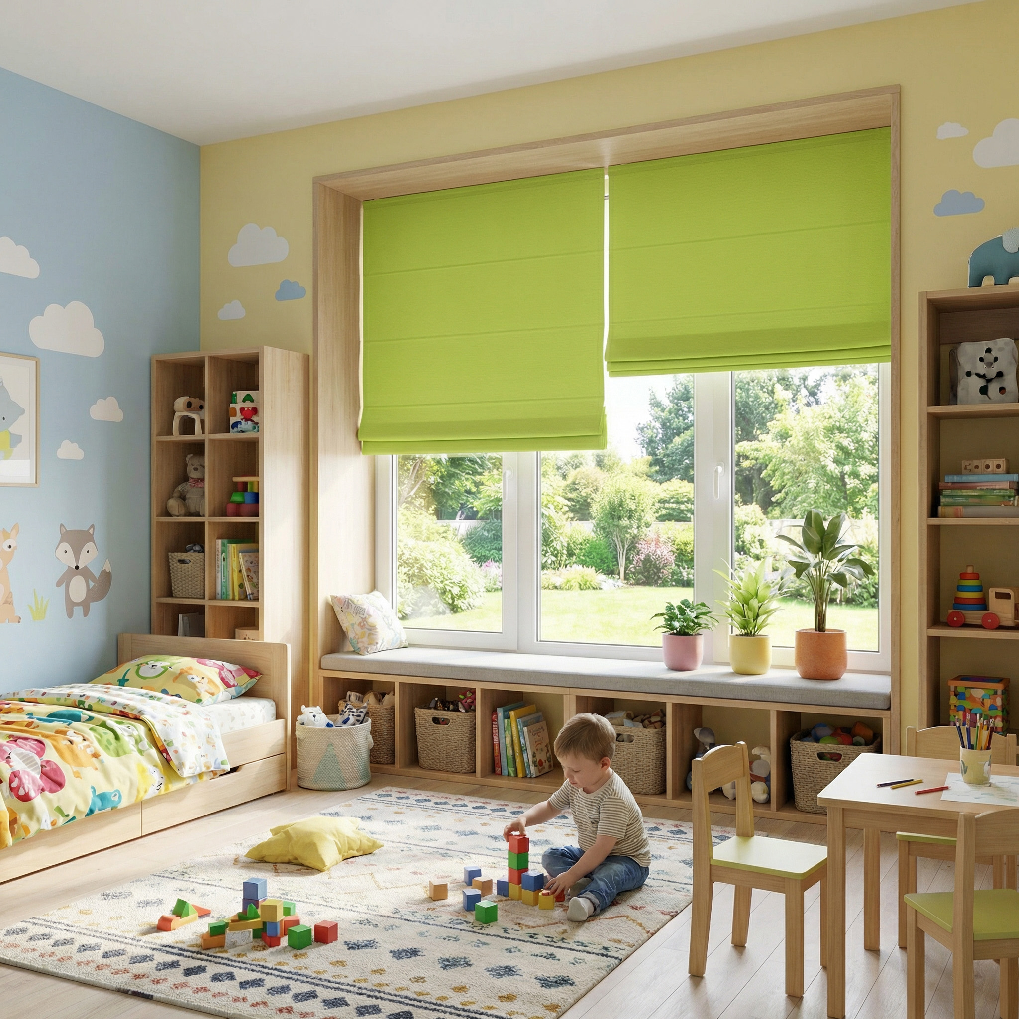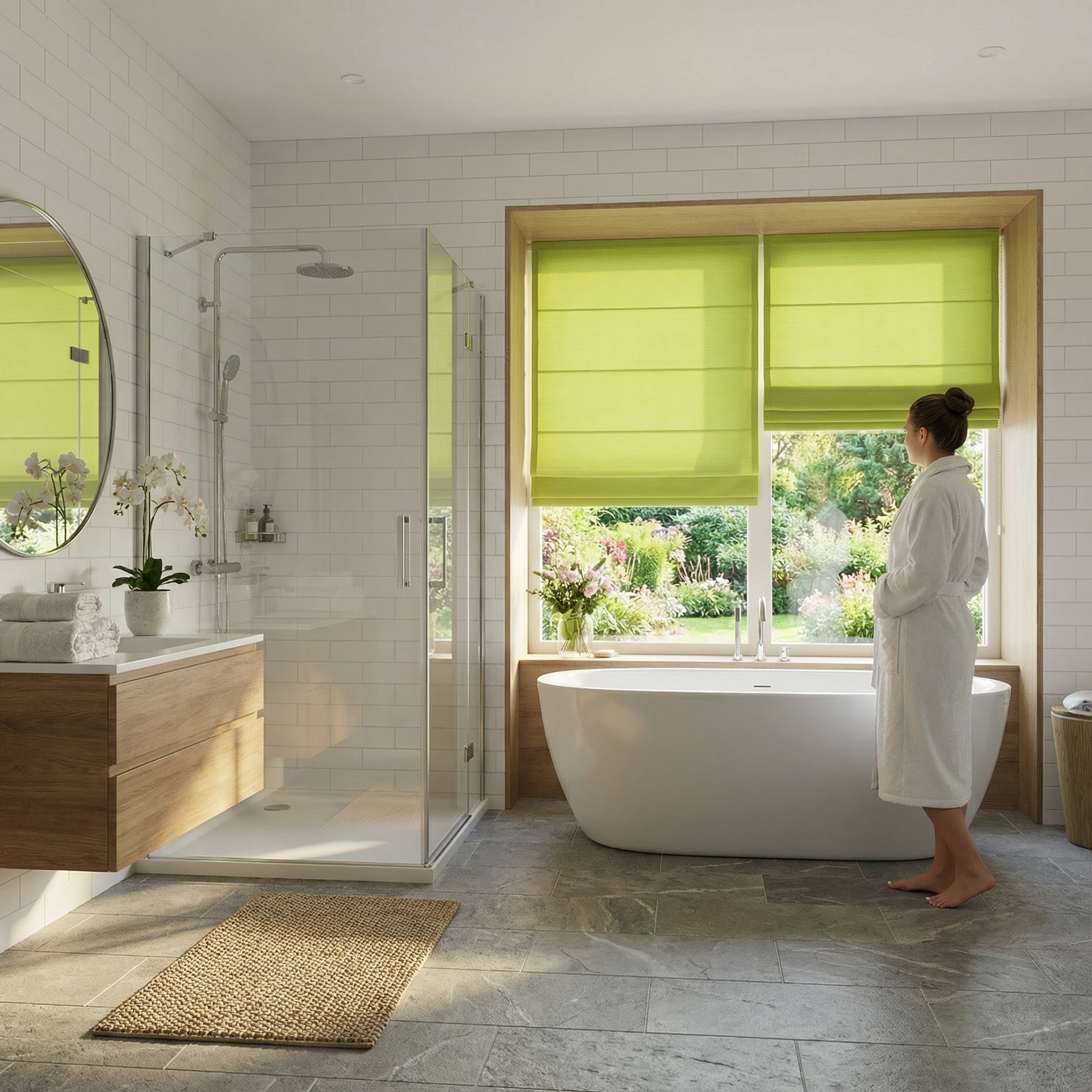 Tkanina tunelowa 7710 – lekko prążkowany poliester w 14 kolorach, z gotowymi tunelami i pętelkami. Delikatnie przepuszcza światło, nie płowieje i świetnie sprawdza się w roletach rzymskich tunelowych.