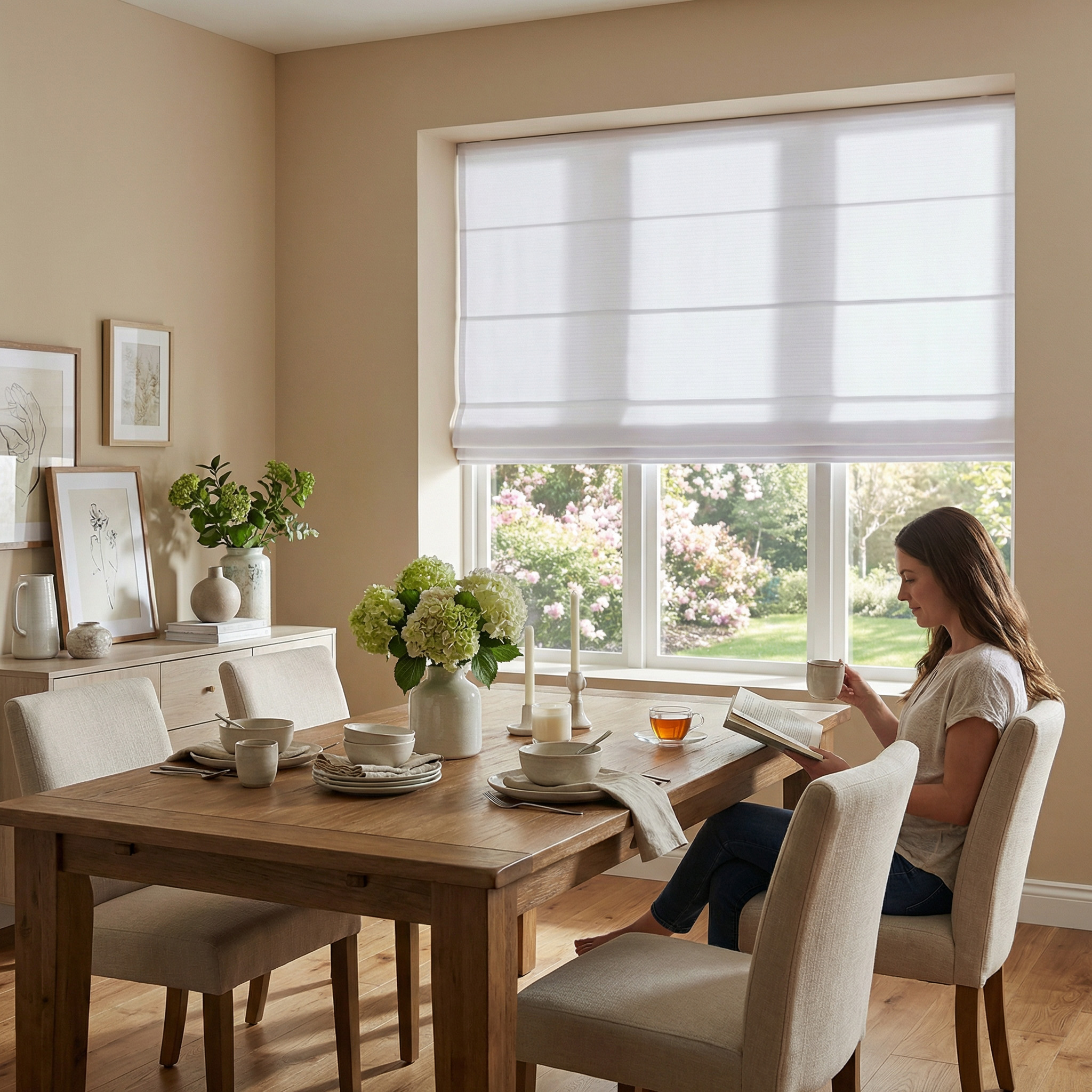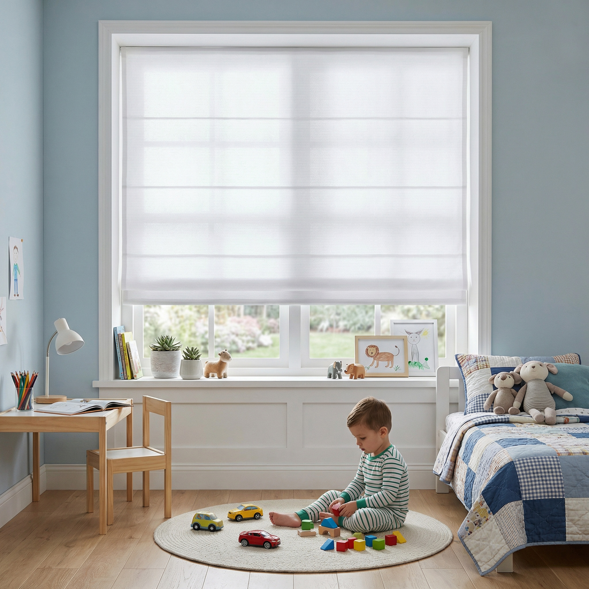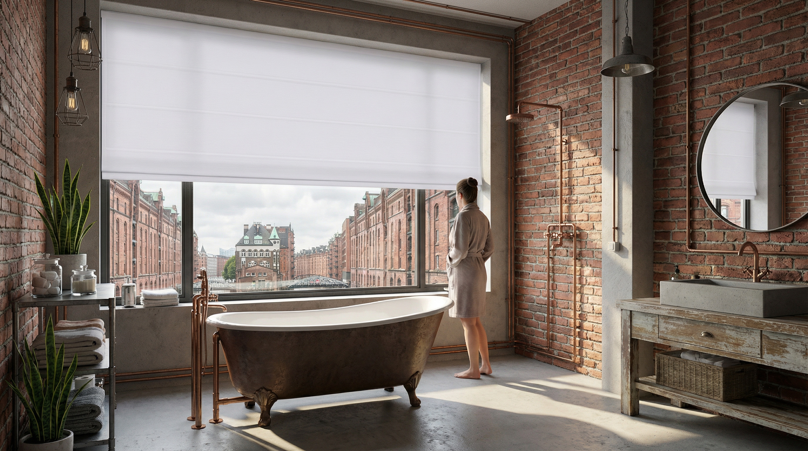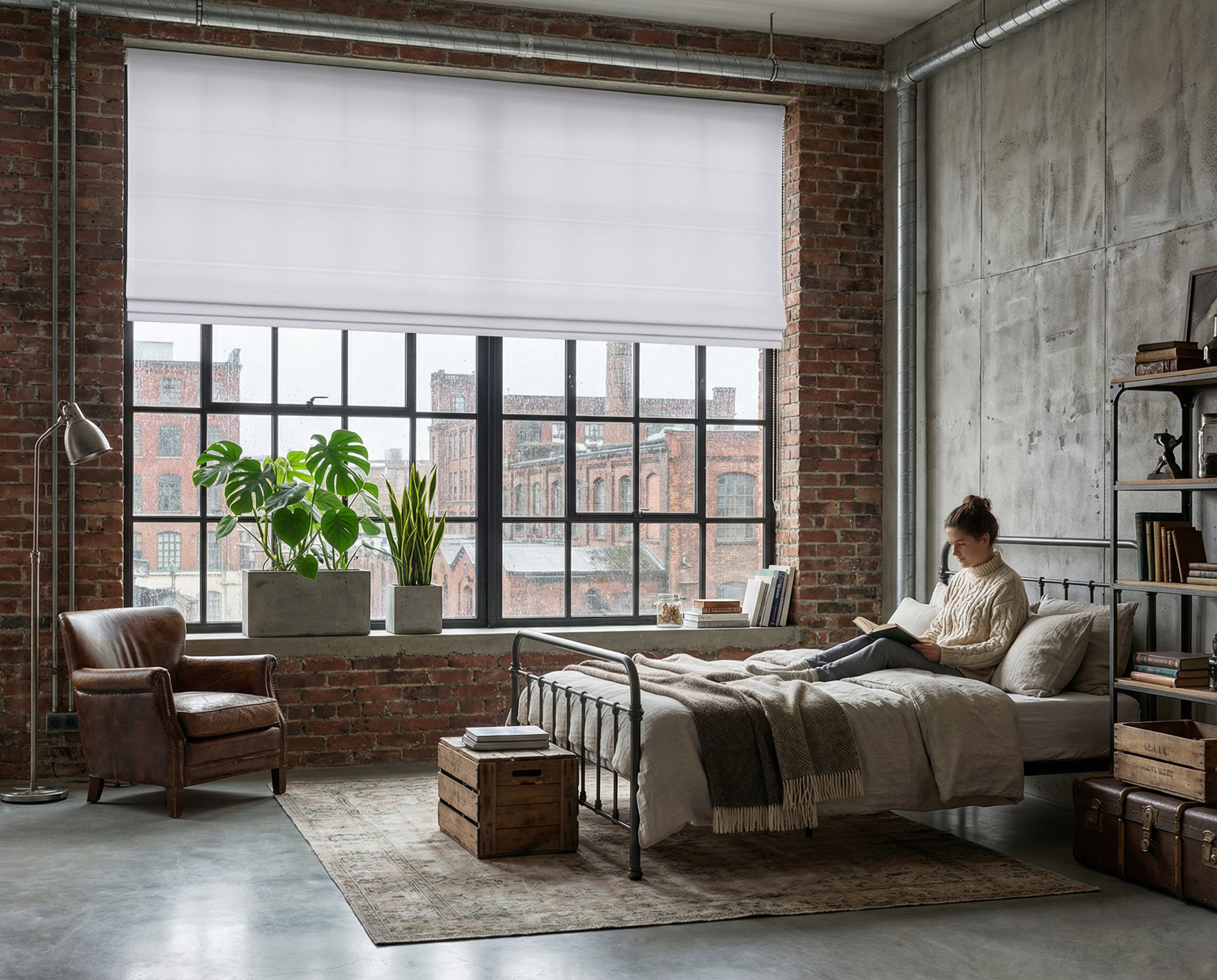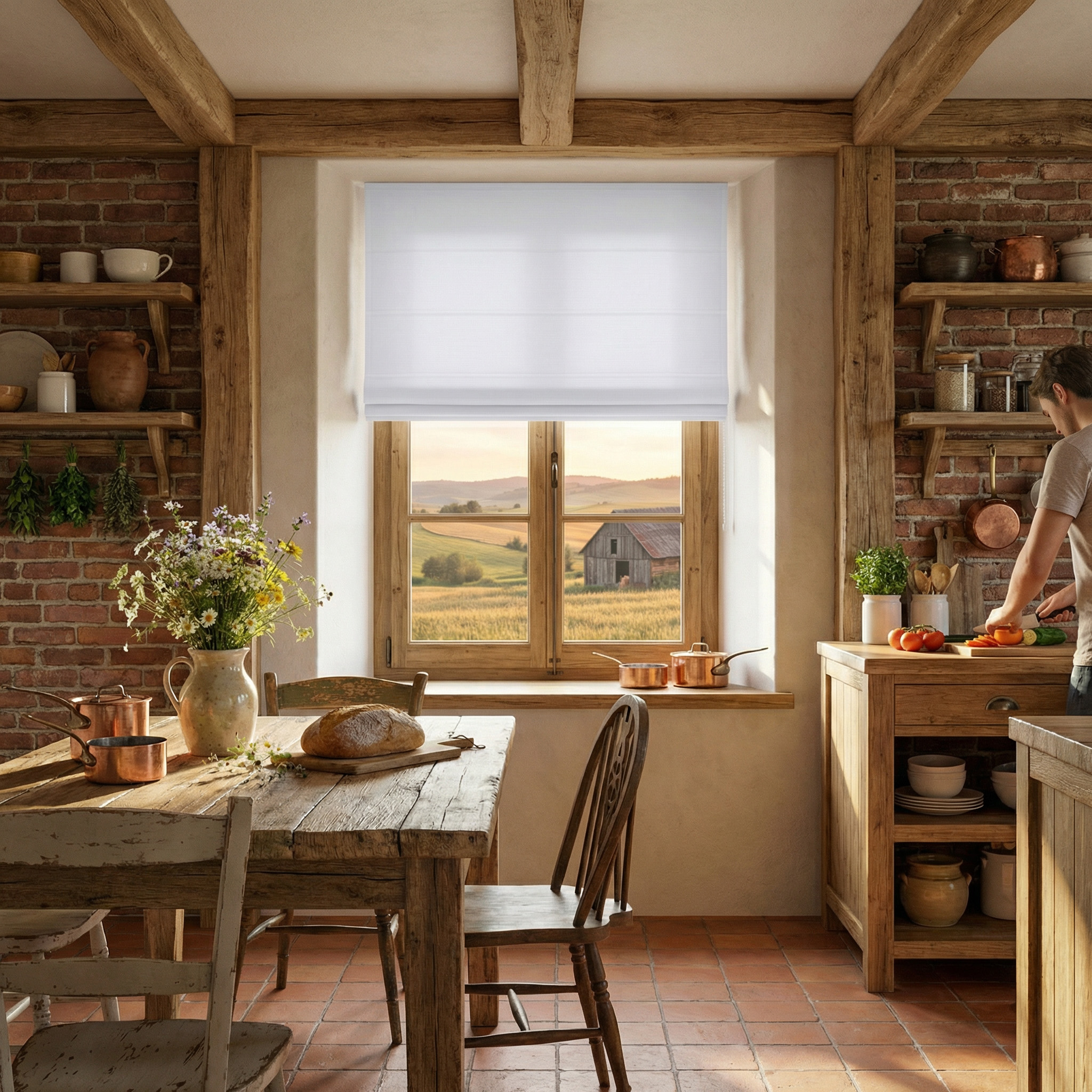 Tkanina tunelowa 7710 – lekko prążkowany poliester w 14 kolorach, z gotowymi tunelami i pętelkami. Delikatnie przepuszcza światło, nie płowieje i świetnie sprawdza się w roletach rzymskich tunelowych.