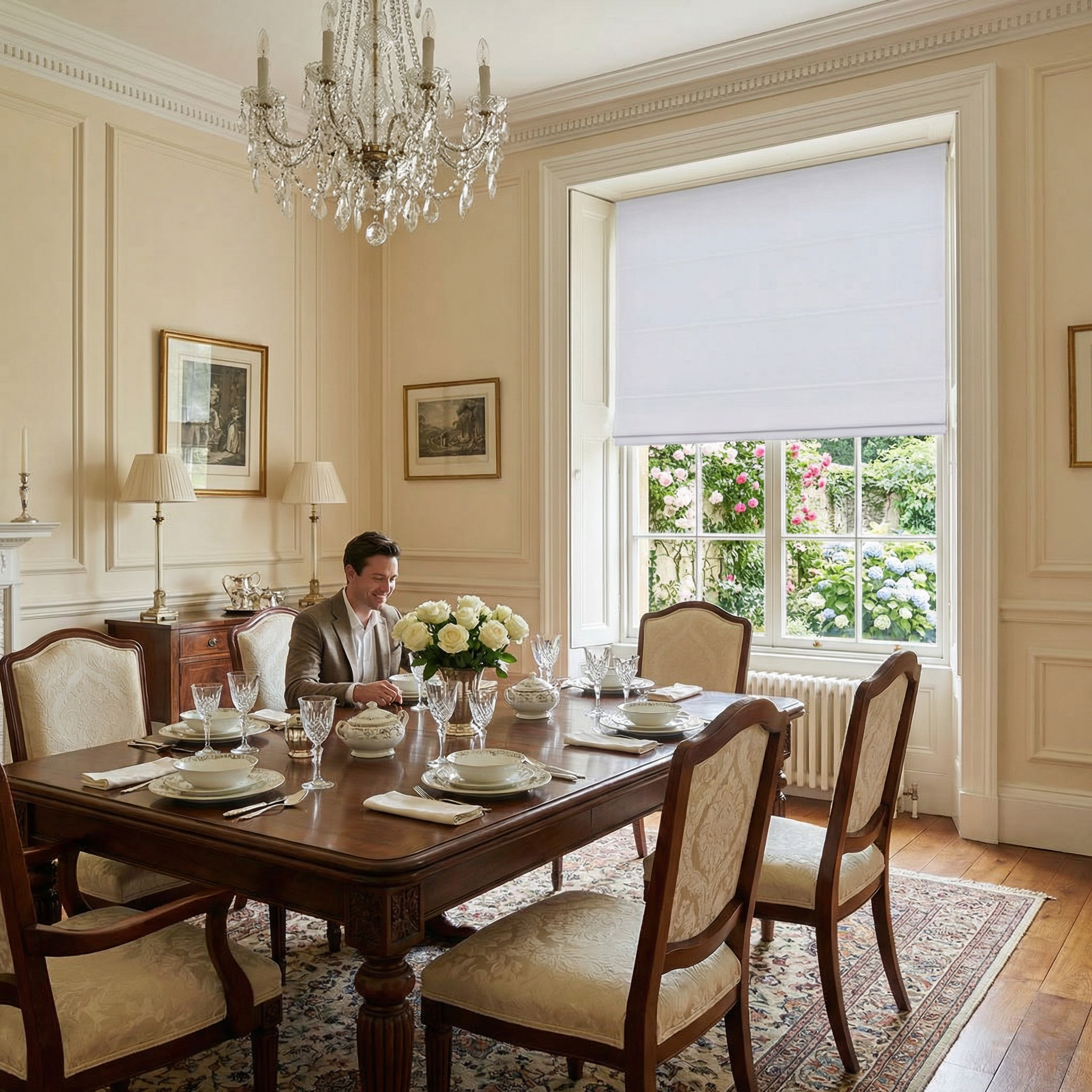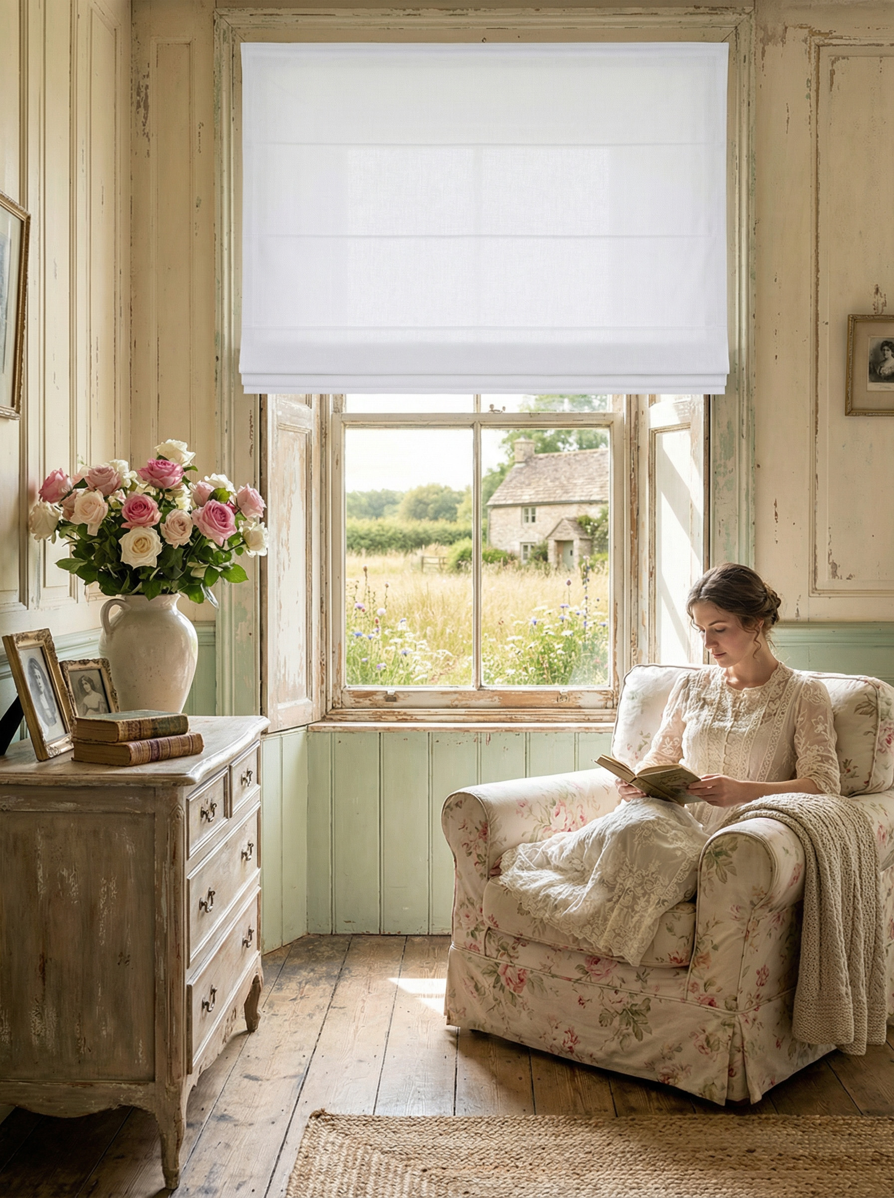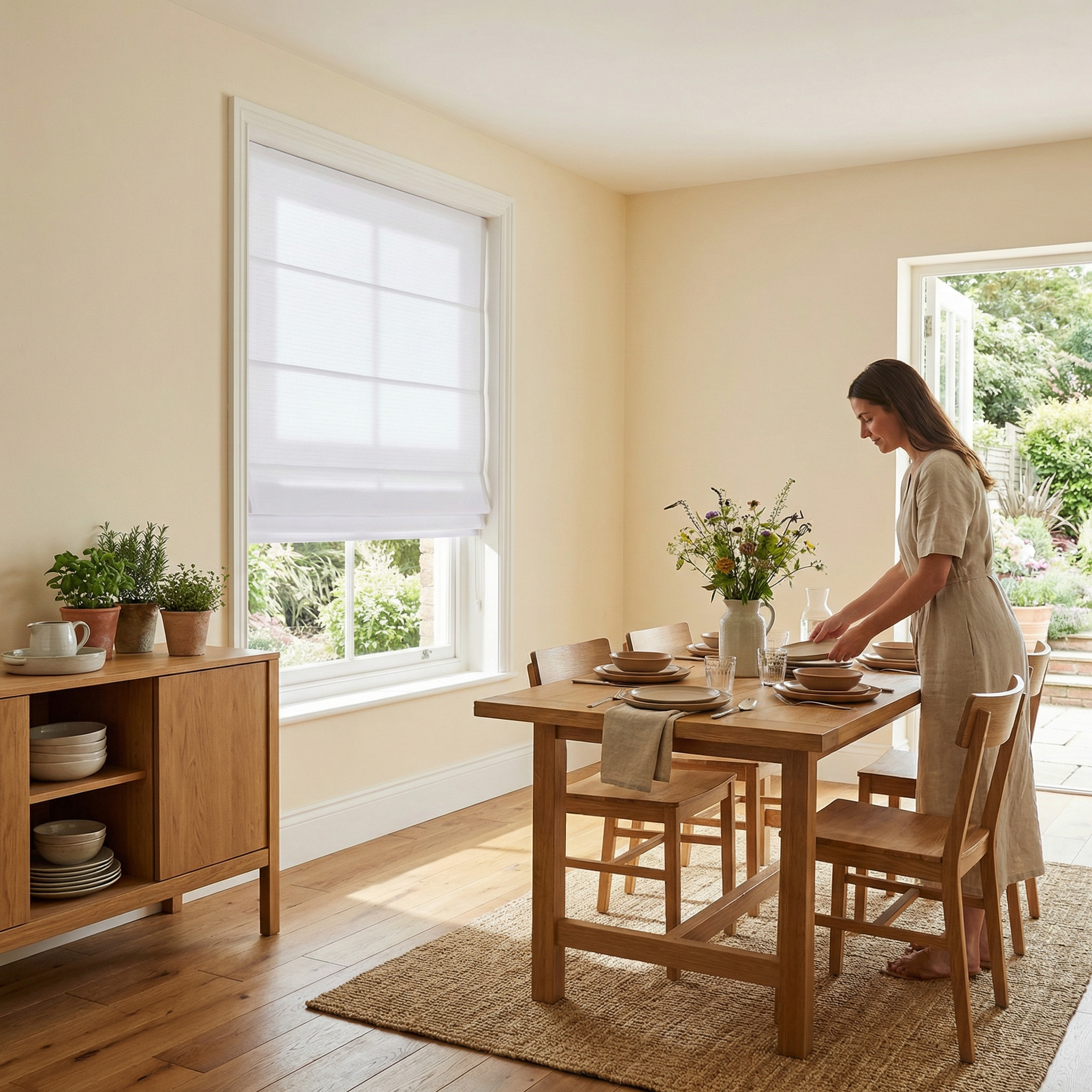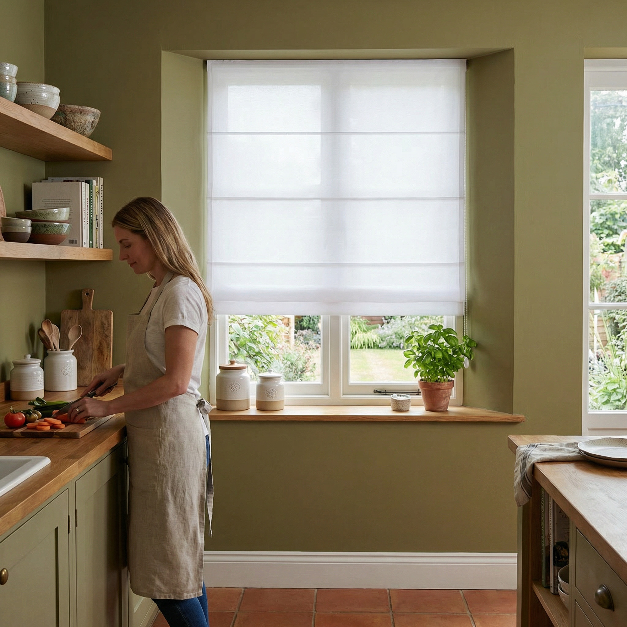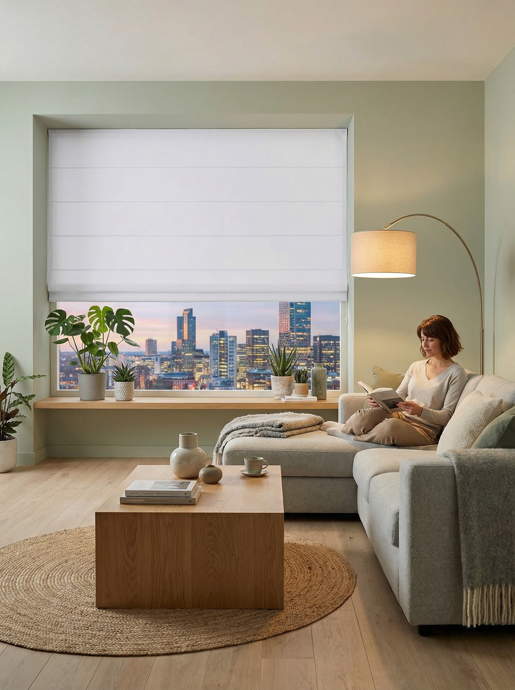 Tkanina tunelowa 7710 – lekko prążkowany poliester w 14 kolorach, z gotowymi tunelami i pętelkami. Delikatnie przepuszcza światło, nie płowieje i świetnie sprawdza się w roletach rzymskich tunelowych.