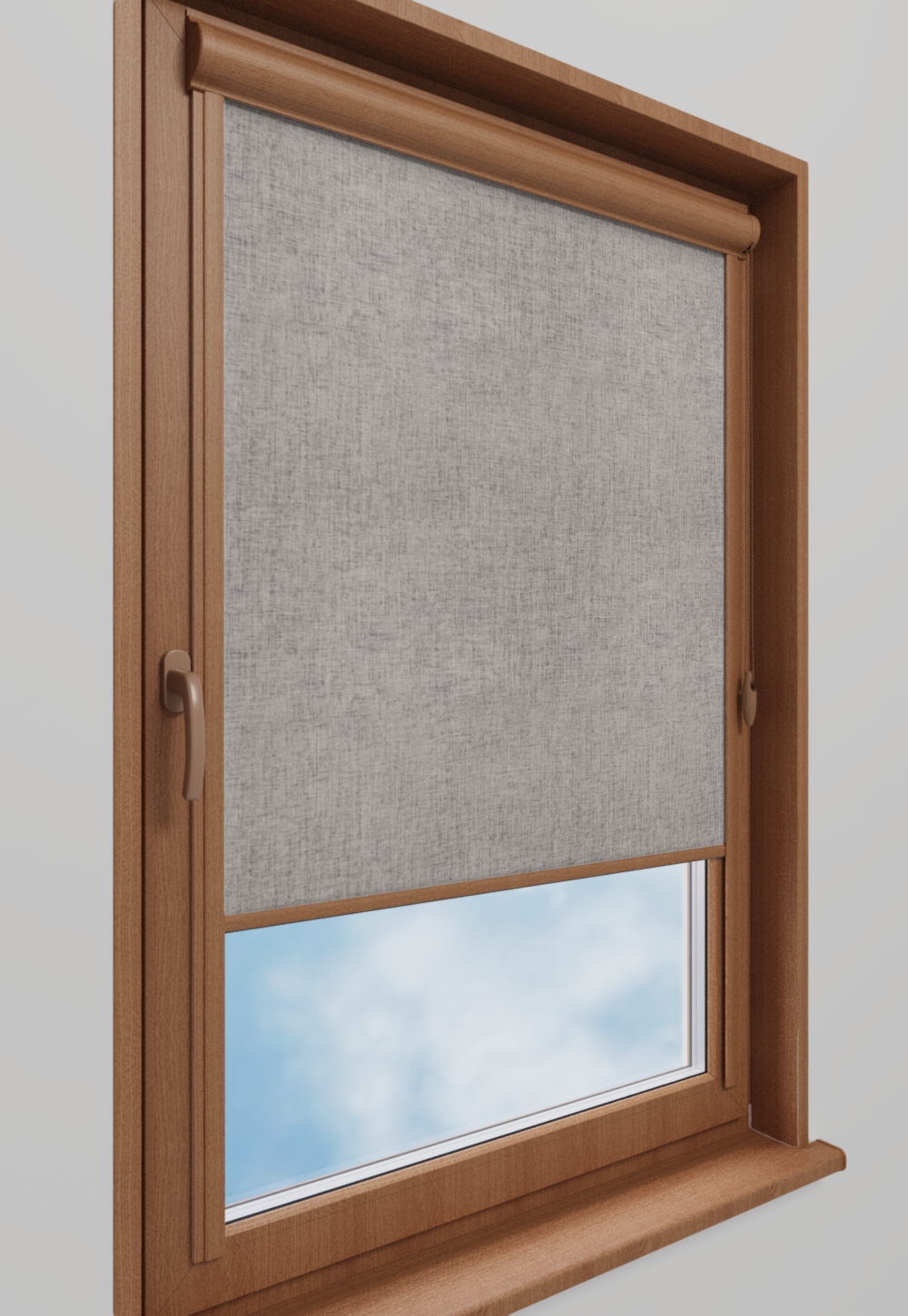 Roleta w kasecie Classic Tkanina Blackout 0014 Jasny szary melanż – kaseta złoty dąb