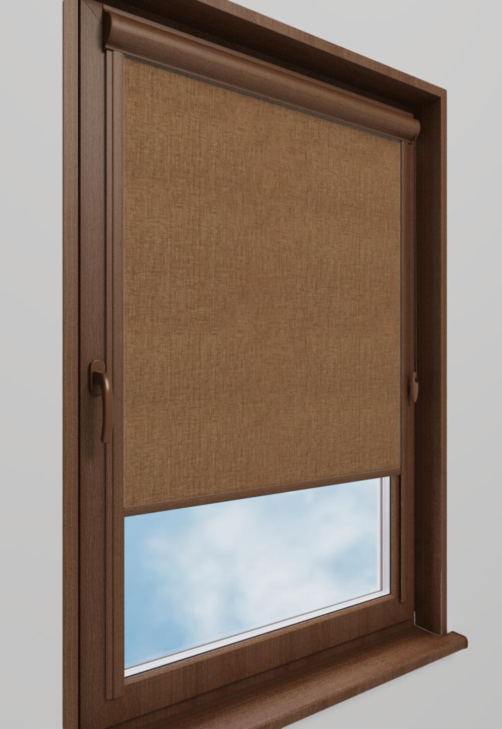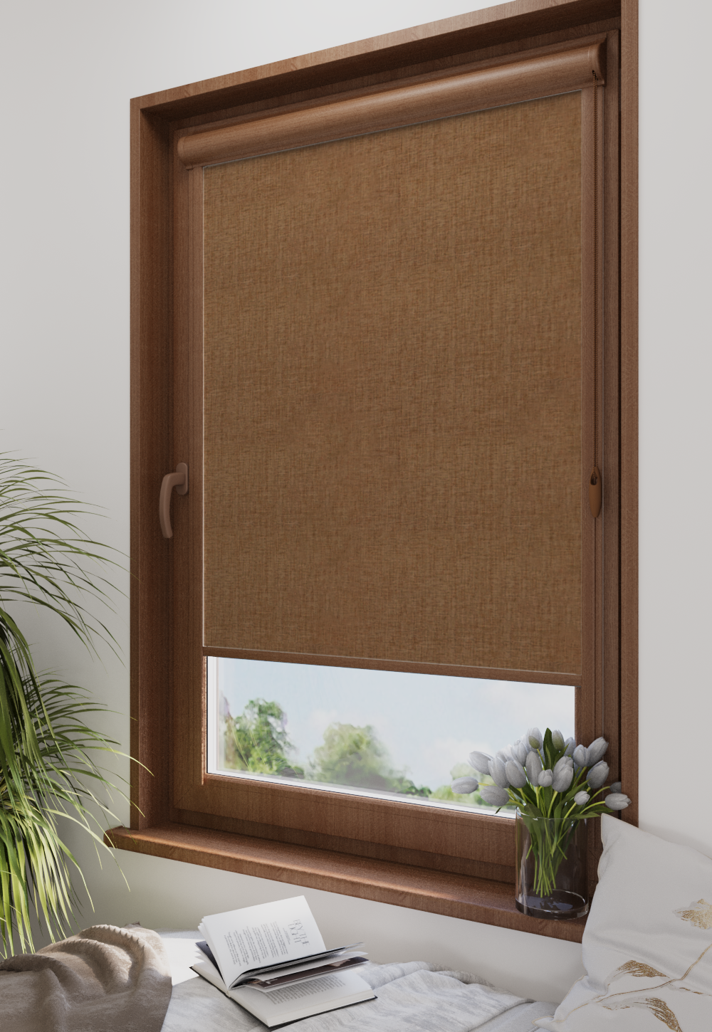 Roleta w kasecie Classic Tkanina Blackout 0015 Jasny brąz melanż – kaseta orzech