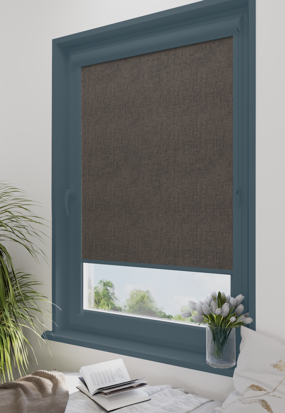 Roleta w kasecie Classic Tkanina Blackout 0017 Brąz melanż – kaseta antracyt