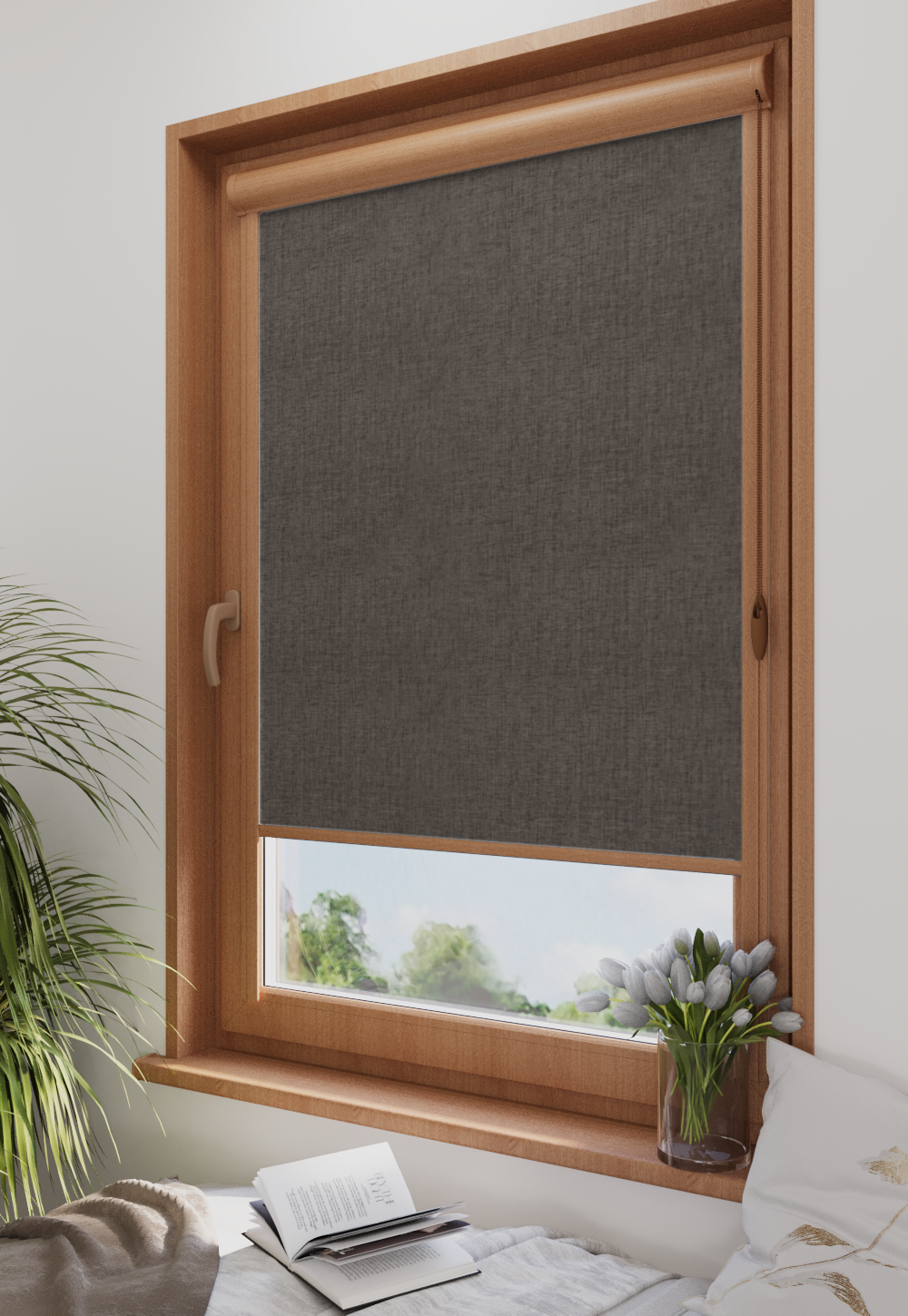 Roleta w kasecie Classic Tkanina Blackout 0017 Brąz melanż – kaseta złoty dąb