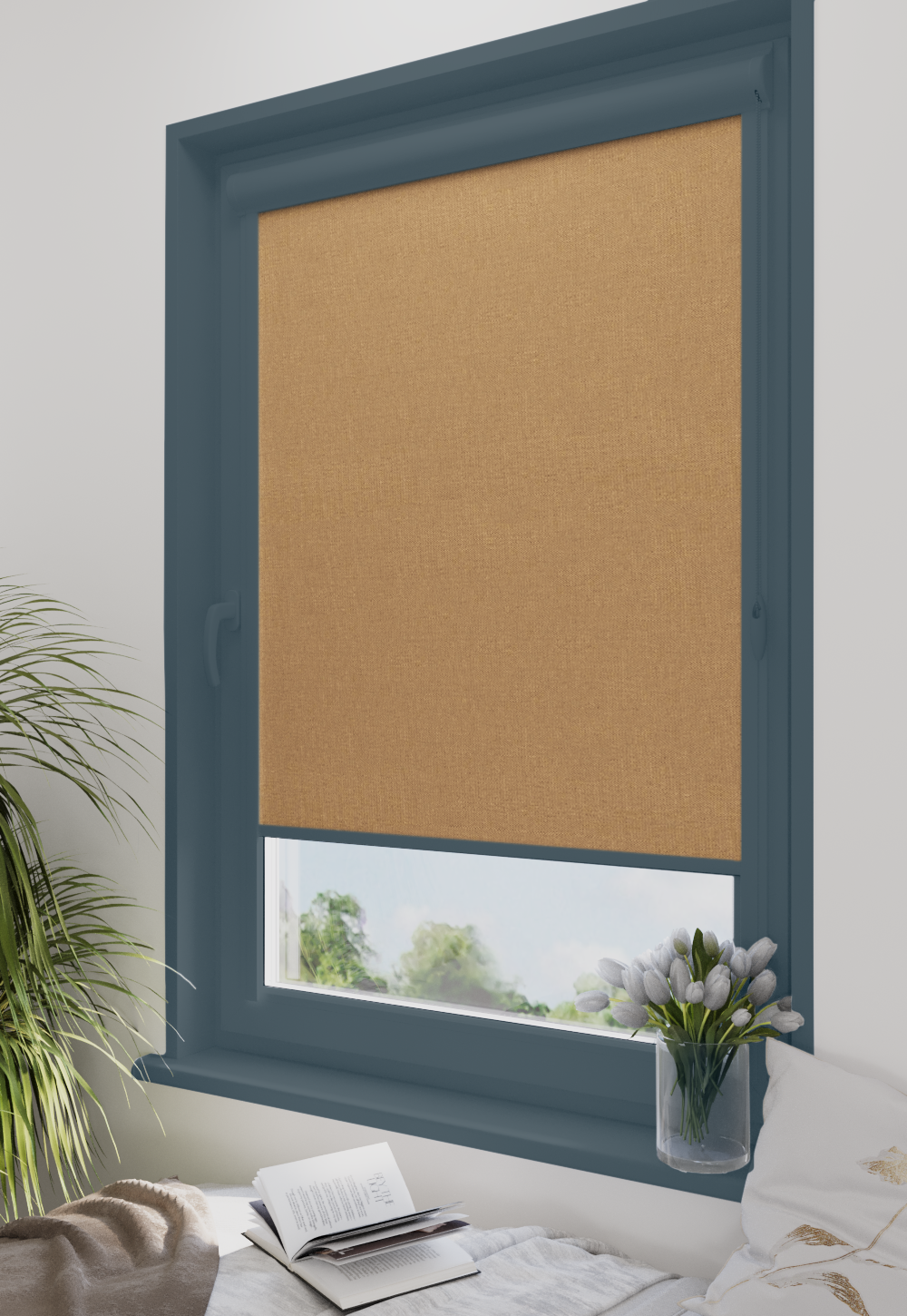 Roleta w kasecie Classic Tkanina Blackout 053 Beż gładki – kaseta antracyt