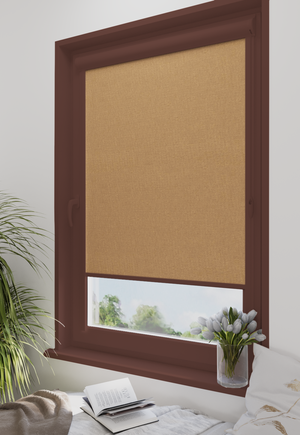 Roleta w kasecie Classic Tkanina Blackout 053 Beż gładki – kaseta brązowy
