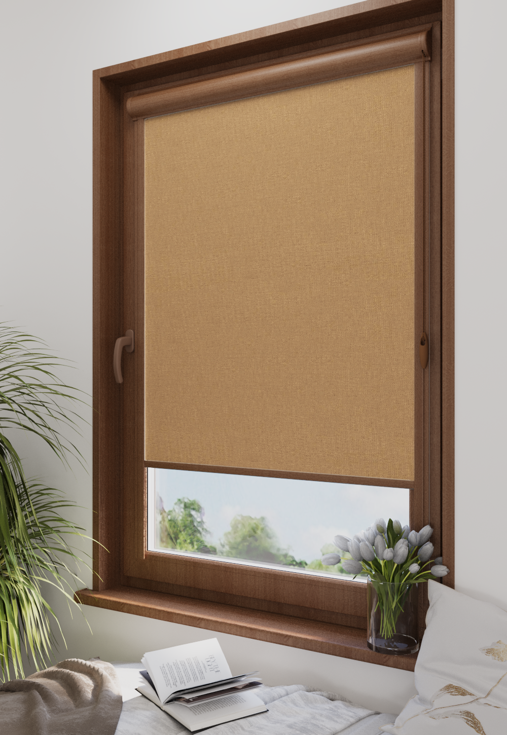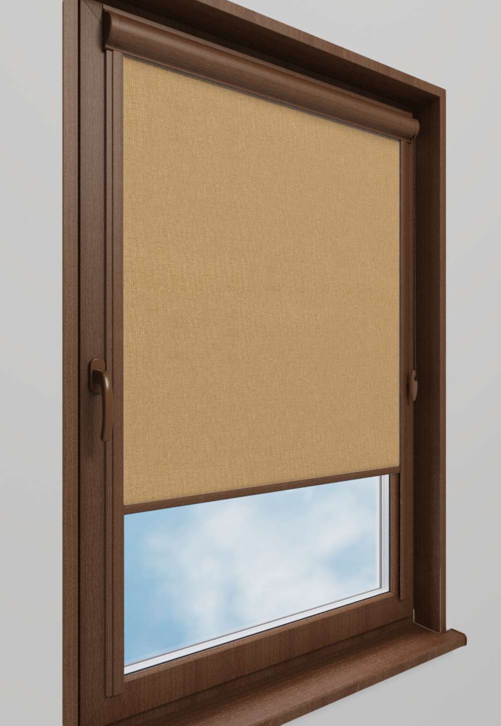 Roleta w kasecie Classic Tkanina Blackout 053 Beż gładki – kaseta orzech