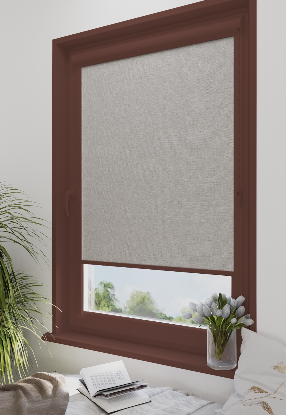 Roleta w kasecie Classic Tkanina Blackout 054 Szary gładki – kaseta brązowy