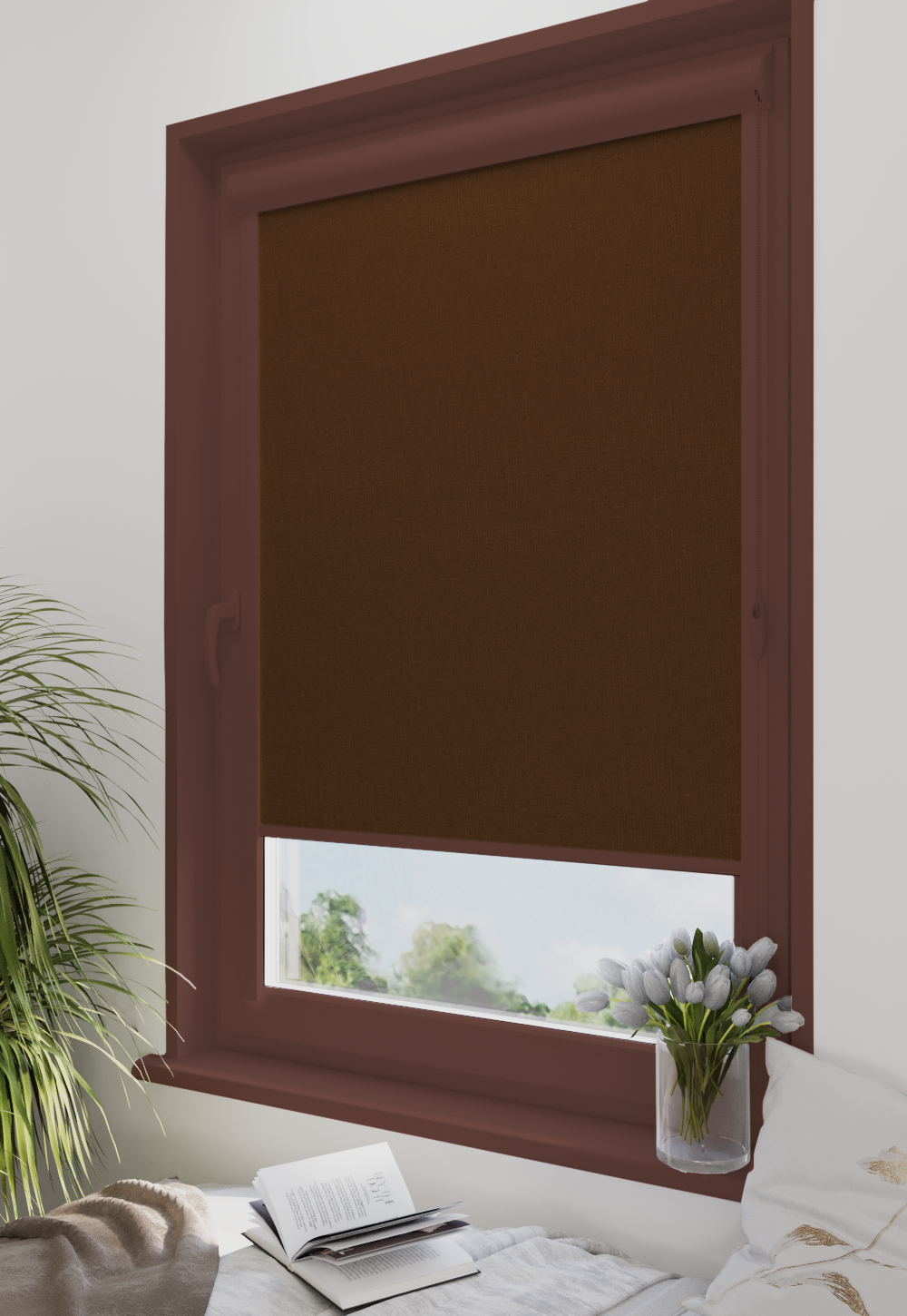 Roleta w kasecie Classic Tkanina Blackout 301 Brąz gładki – kaseta brązowy