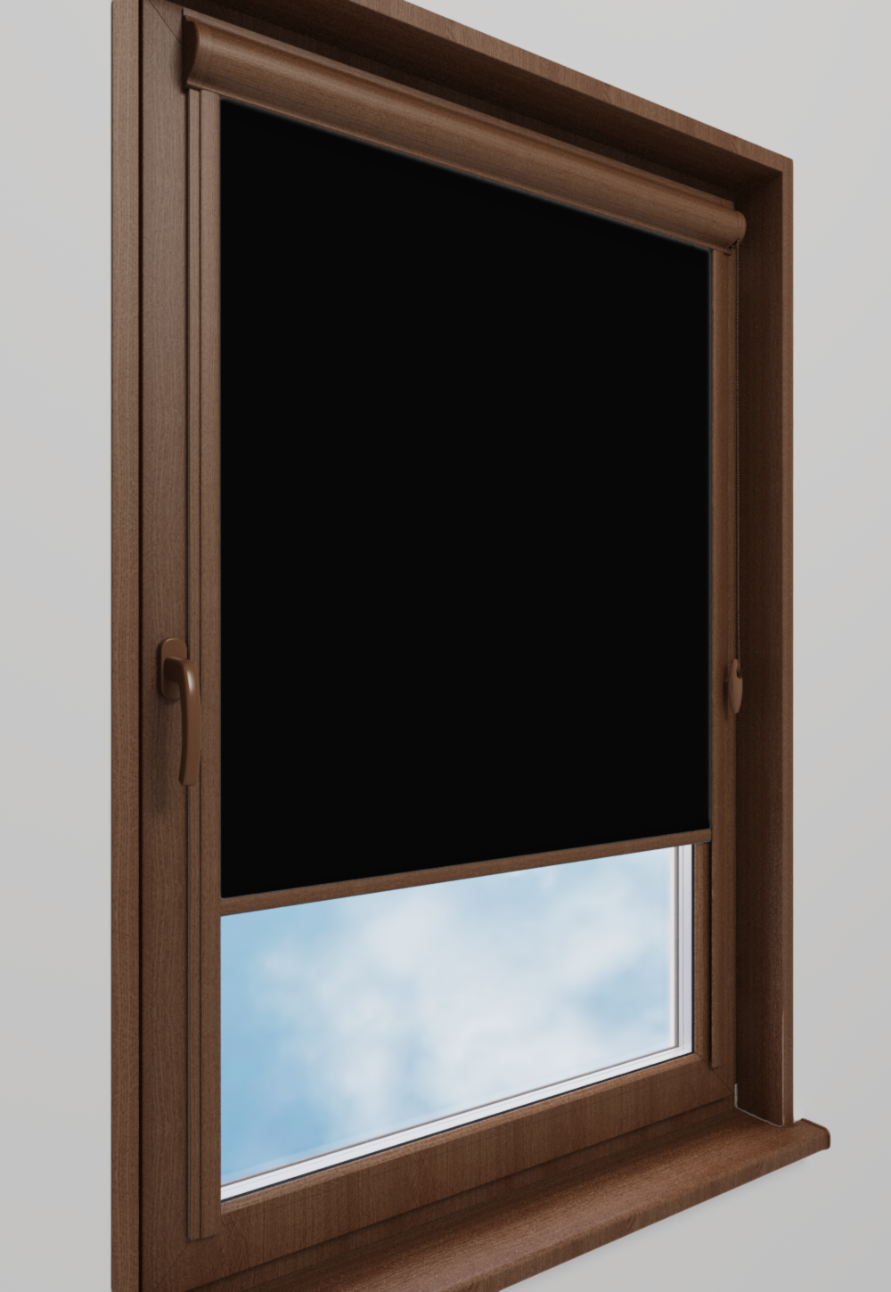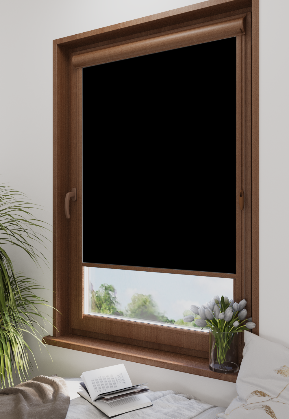 Roleta w kasecie Classic Tkanina Blackout 305 Czarny gładki – kaseta orzech