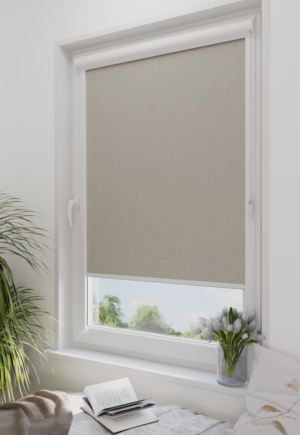 Roleta w kasecie Classic Tkanina Diego 522 Kamienna Szarość – kaseta biały