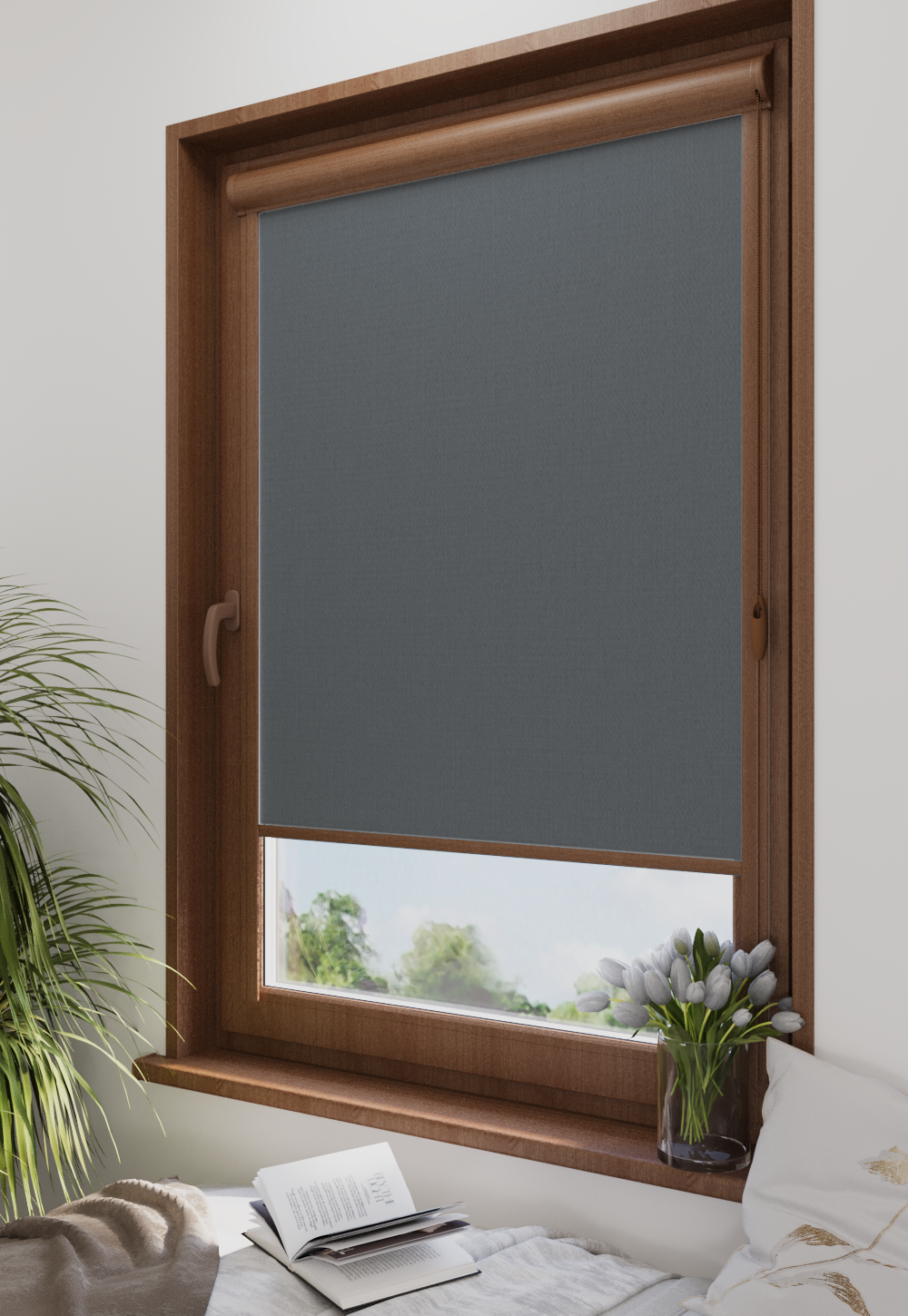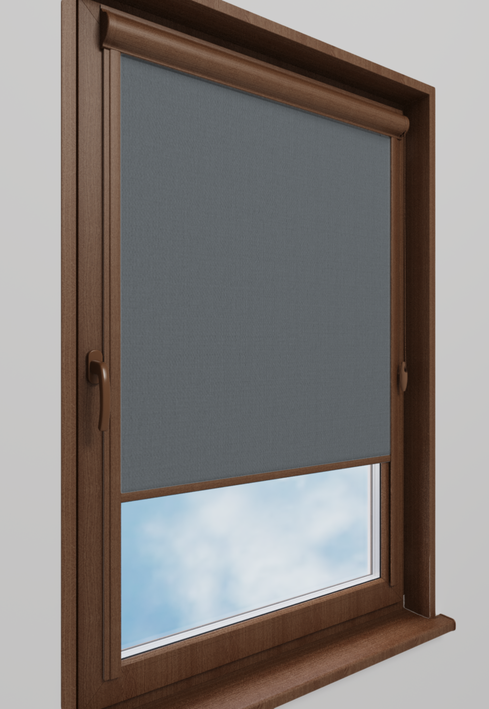 Roleta w kasecie Classic Tkanina Diego 669 Stalowy Szary – kaseta orzech