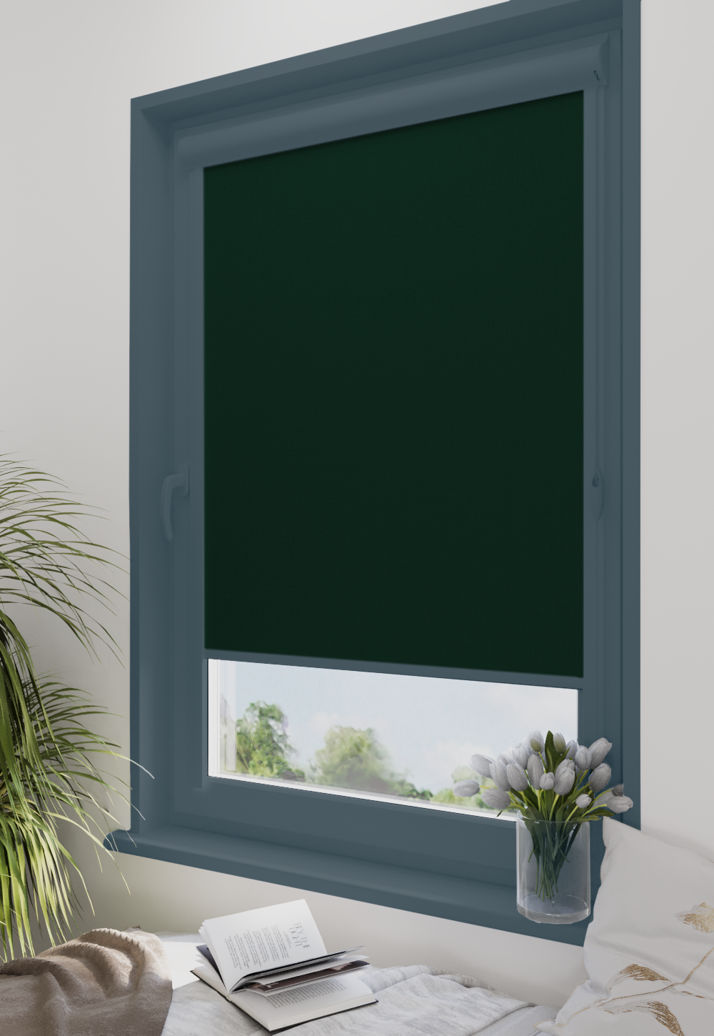 Roleta w kasecie Classic Tkanina Diego 674 Butelkowa Zieleń – kaseta antracyt