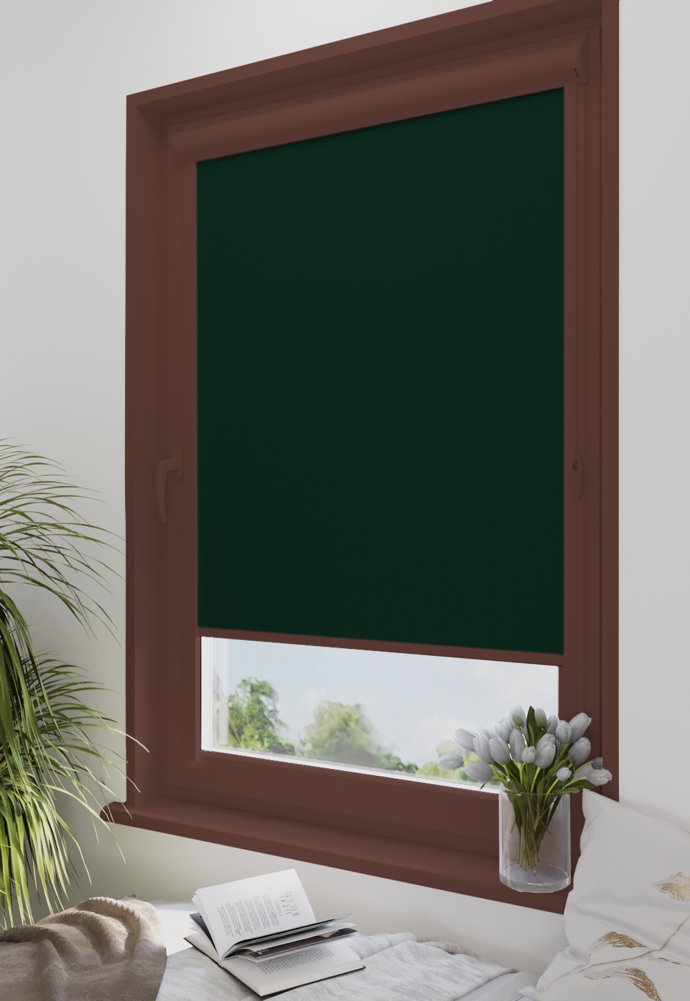 Roleta w kasecie Classic Tkanina Diego 674 Butelkowa Zieleń – kaseta brązowy