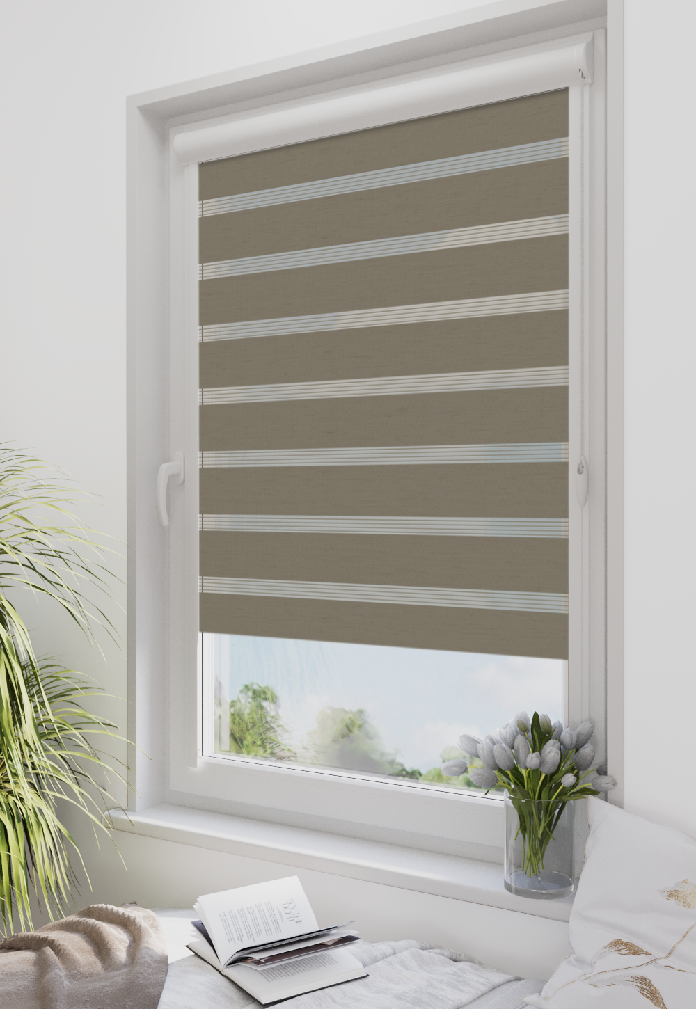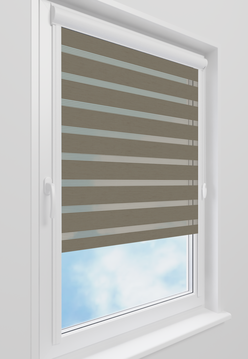 Roleta w kasecie Classic Tkanina Dzień Noc BH-1405 Szary Beż - kaseta biała