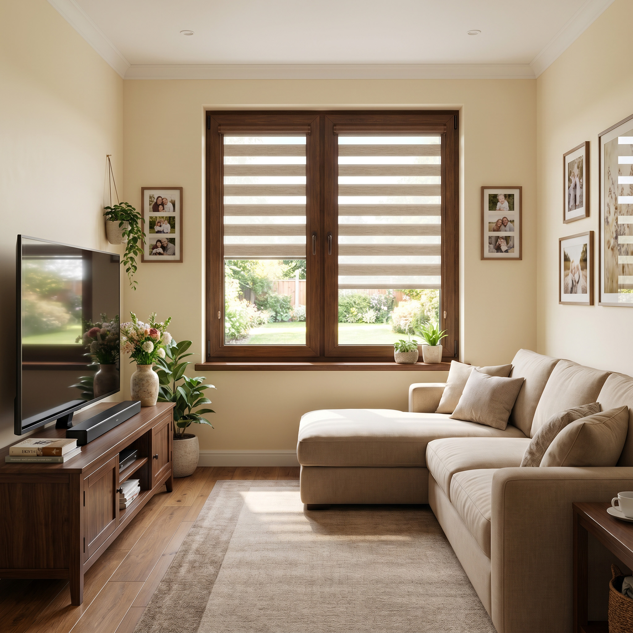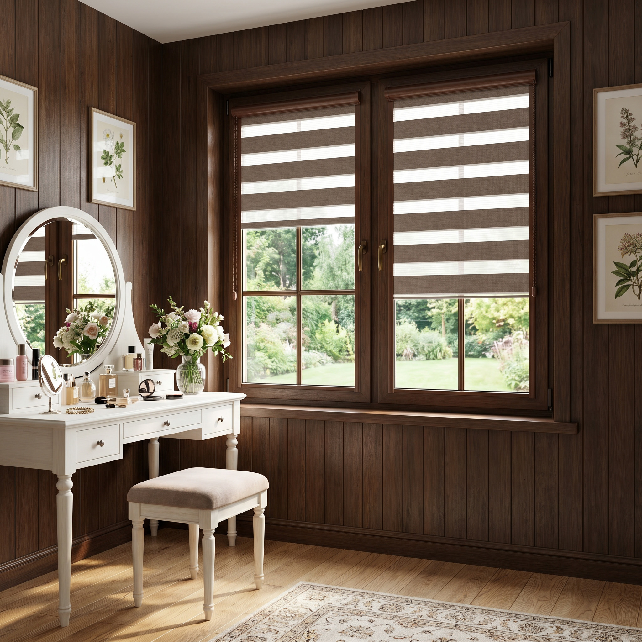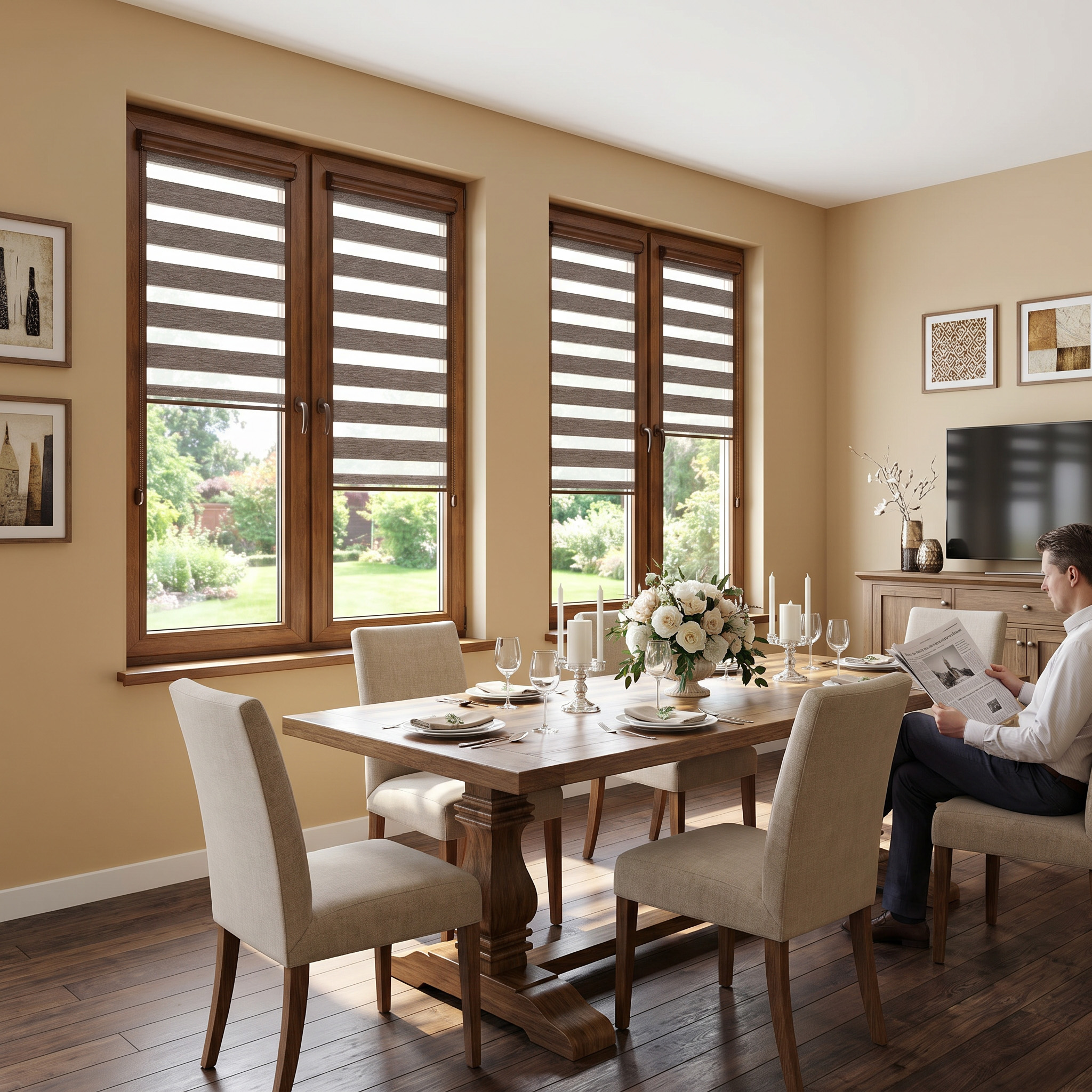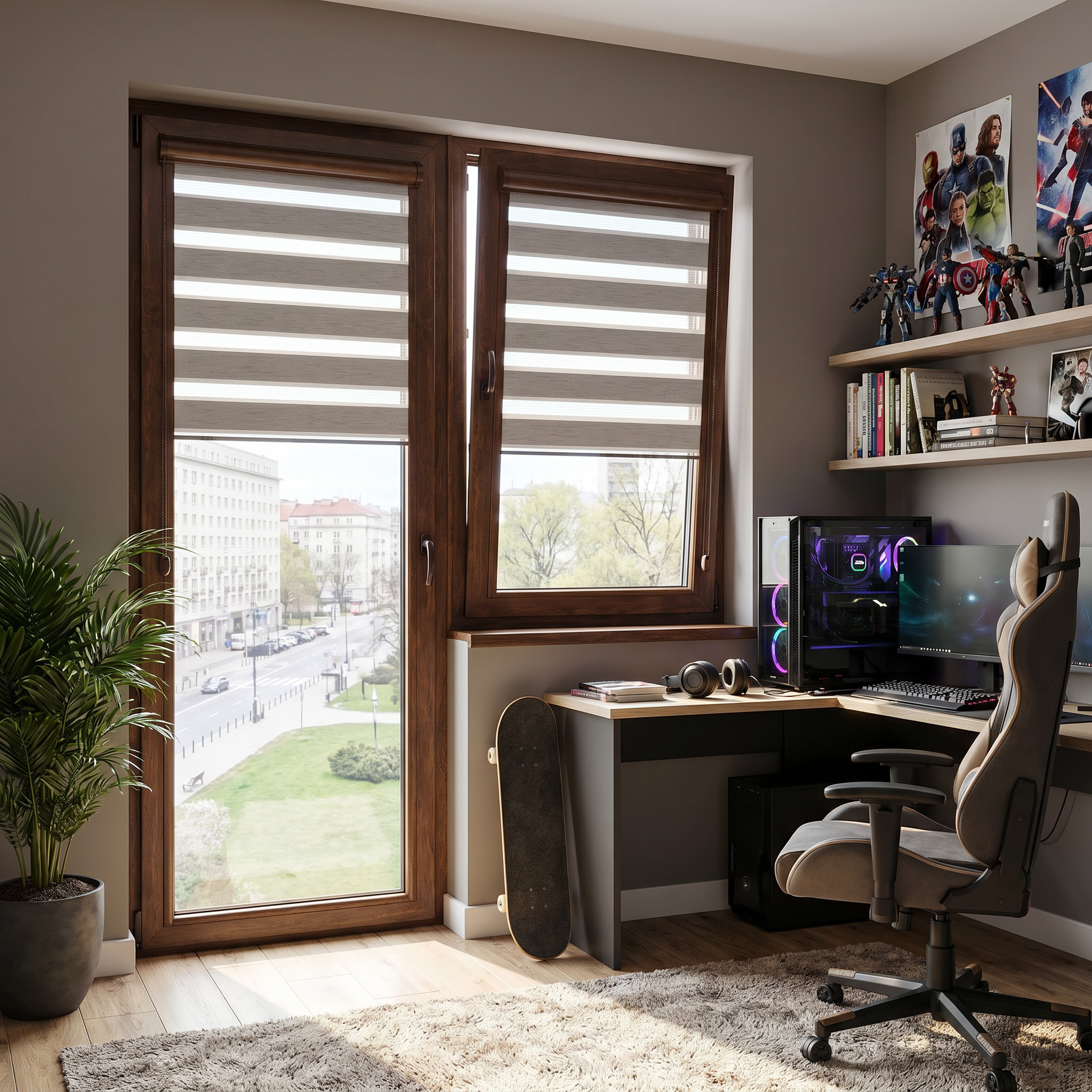 Roleta w kasecie Classic Tkanina Dzień Noc BH-1406 Szary Beż - kaseta orzech