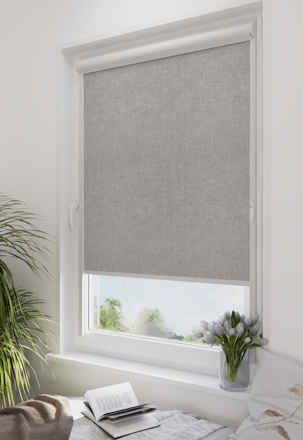 Roleta w kasecie LORD Tkanina Blackout 0014 Jasny szary melanż – kaseta biały