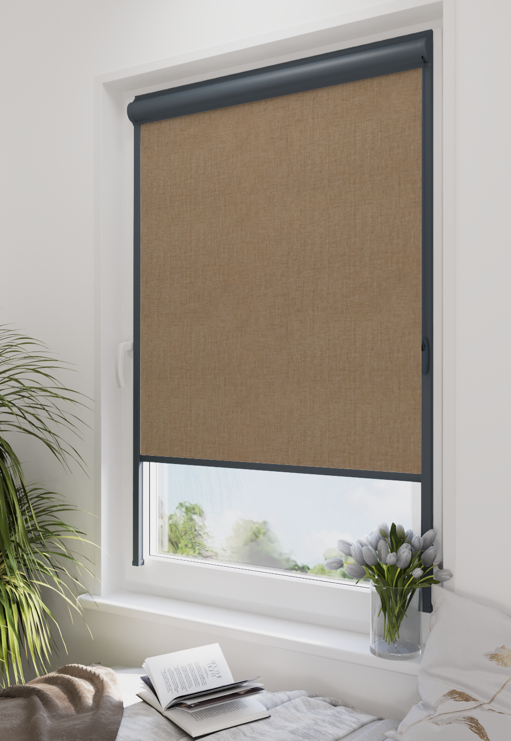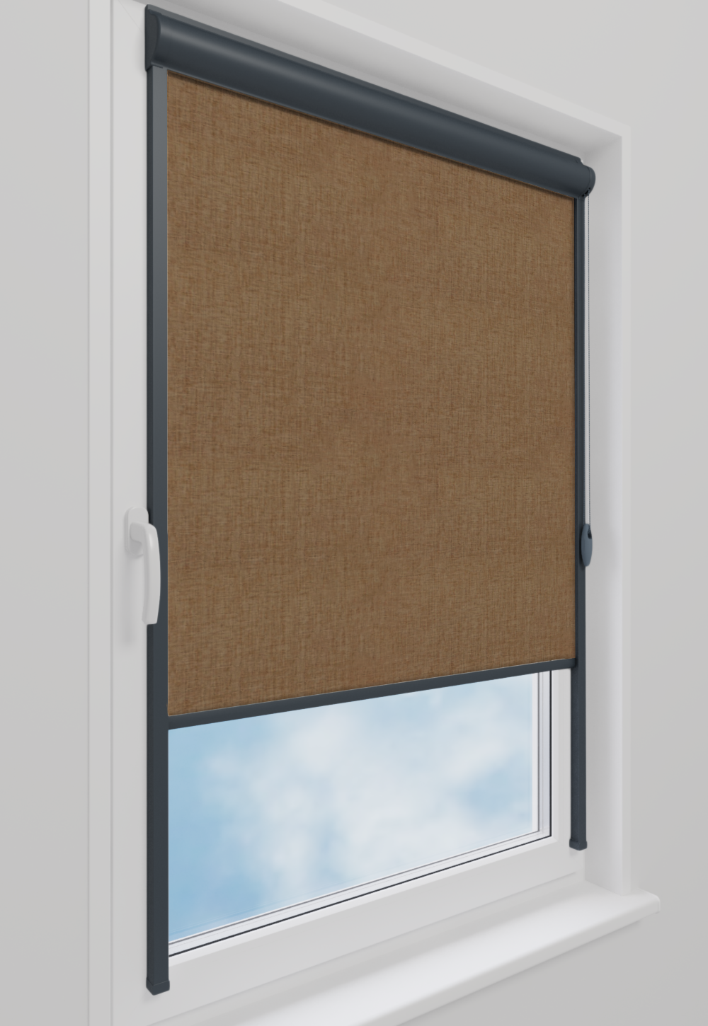 Roleta w kasecie LORD Tkanina Blackout 0015 Jasny brąz melanż – kaseta antracyt