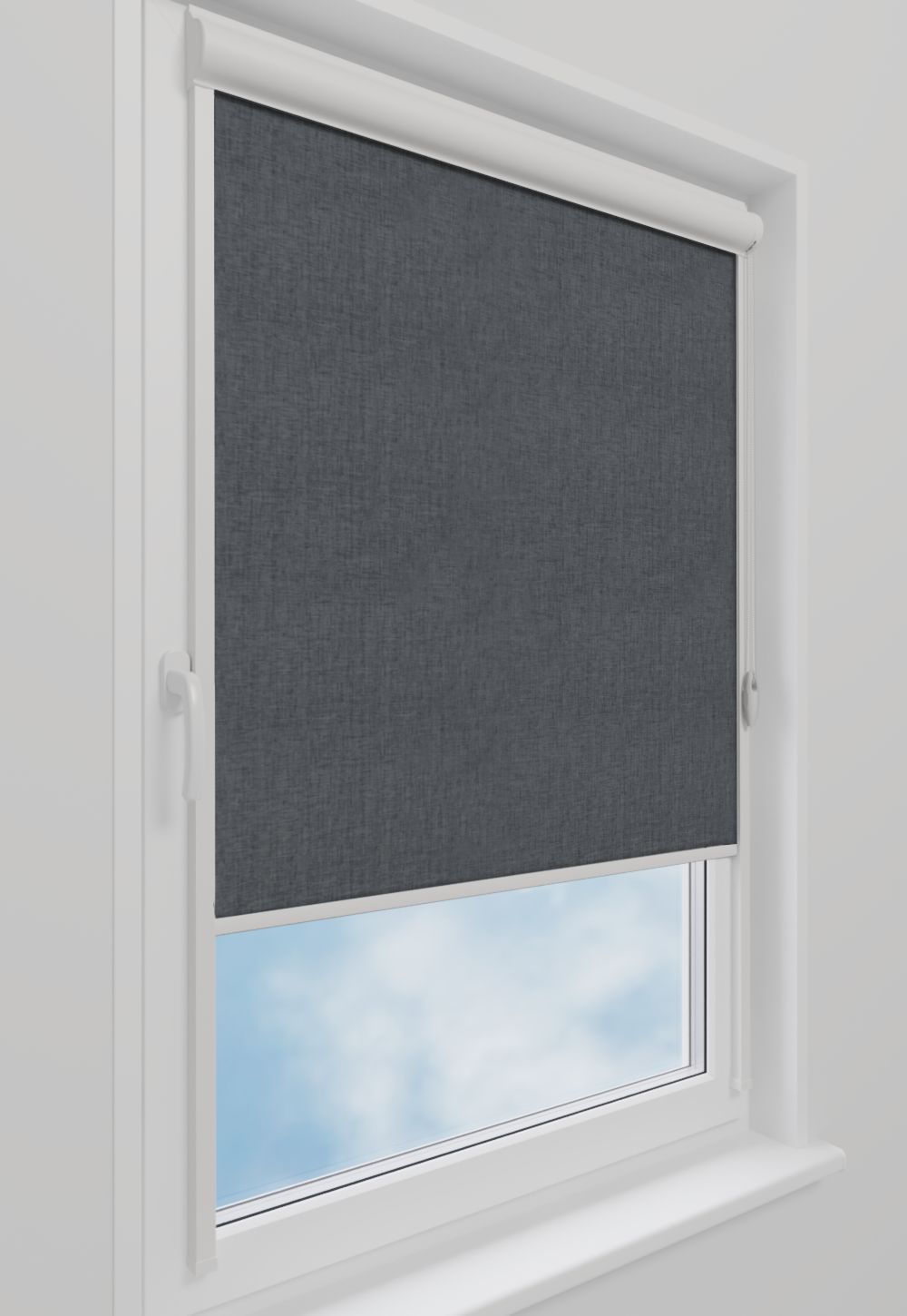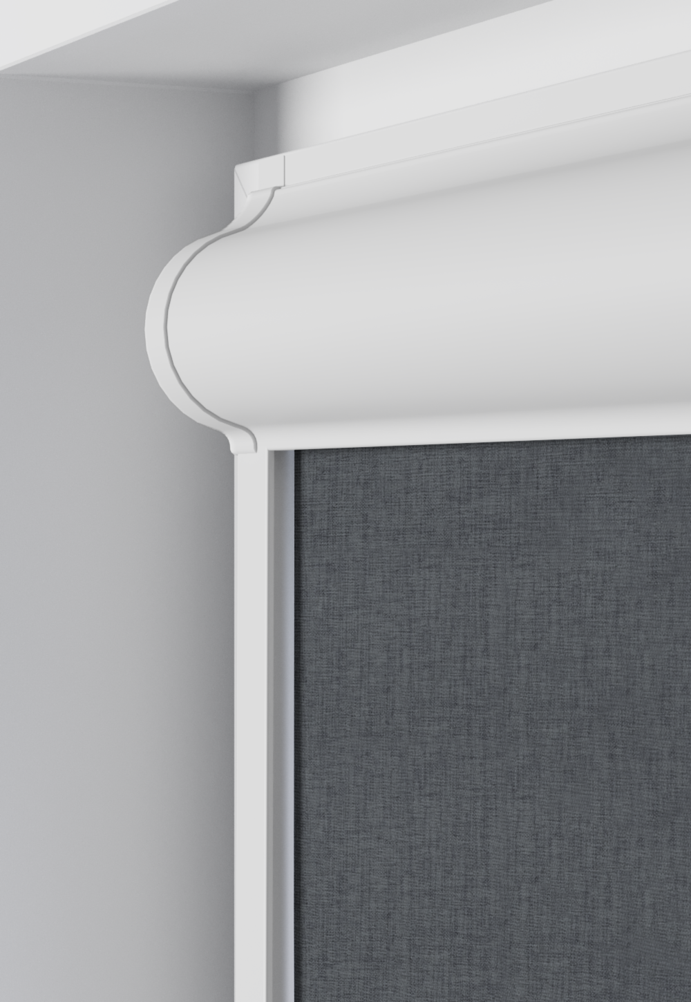 Roleta w kasecie LORD Tkanina Blackout 0018 Ciemny szary melanż – kaseta biały