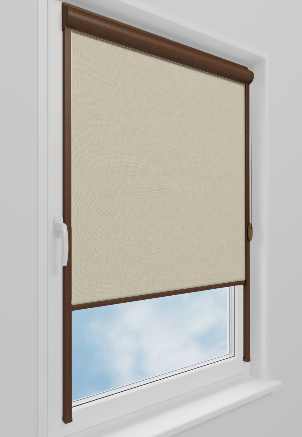 Roleta w kasecie LORD Tkanina Blackout 056 Krem gładki – kaseta orzech