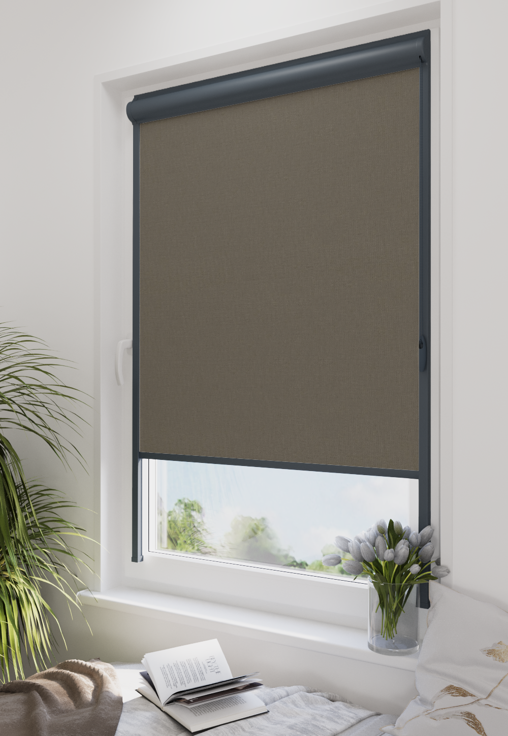 Roleta w kasecie LORD Tkanina Blackout 061 Grafit gładki – kaseta antracyt
