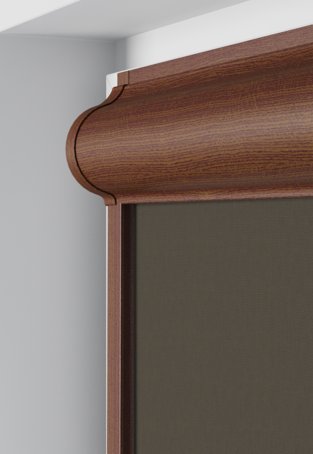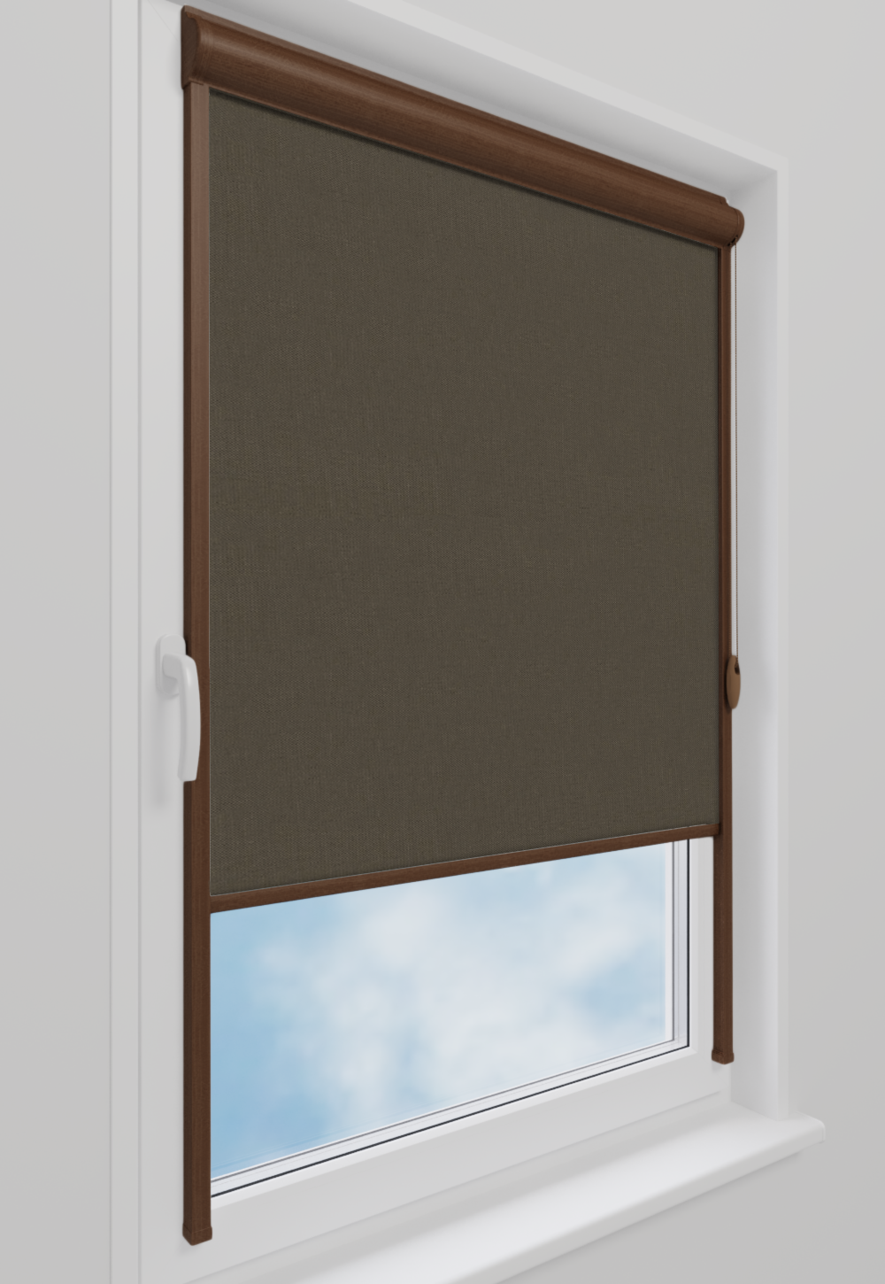 Roleta w kasecie LORD Tkanina Blackout 061 Grafit gładki – kaseta orzech