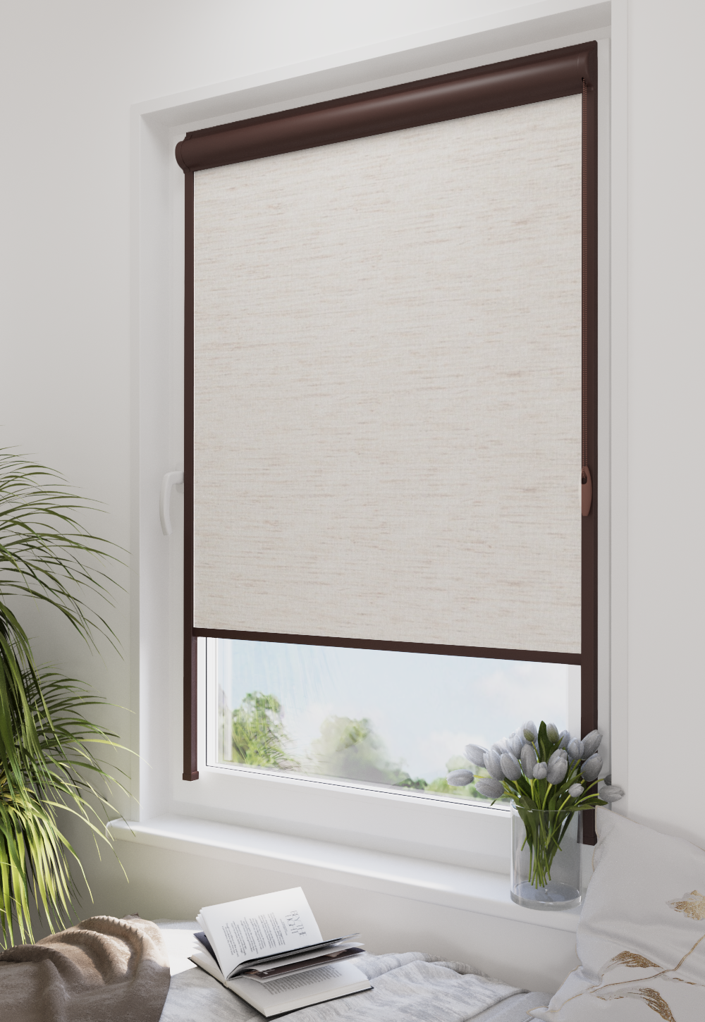 Roleta w kasecie LORD Tkanina Blackout 063 Natural – kaseta brązowy