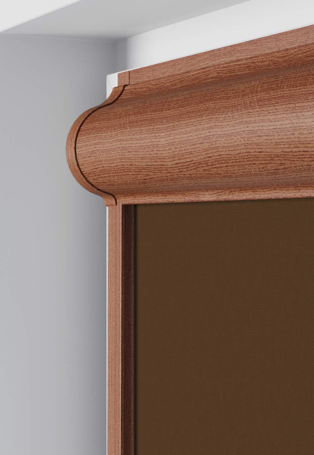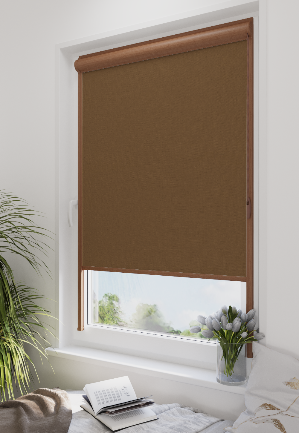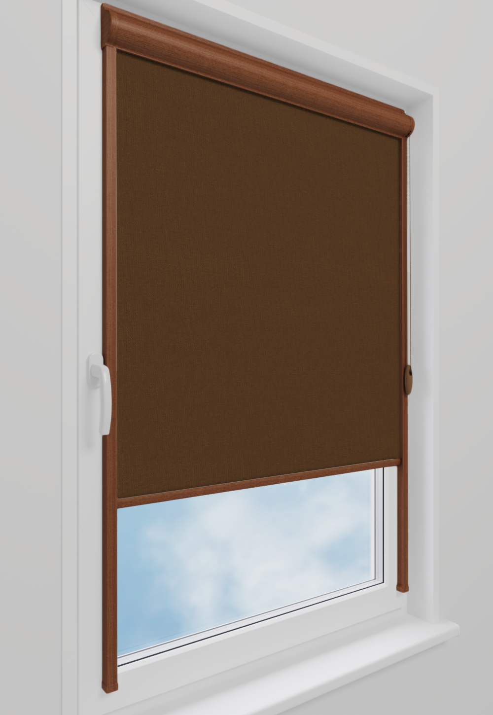 Roleta w kasecie LORD Tkanina Blackout 301 Brąz gładki – kaseta złoty dąb