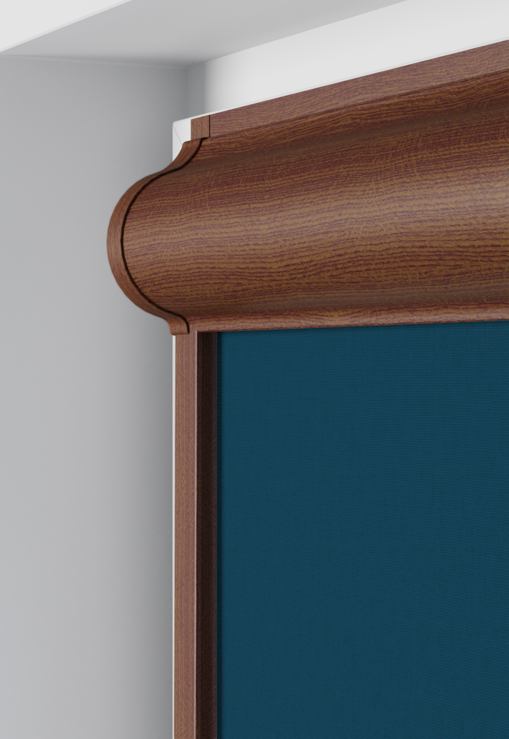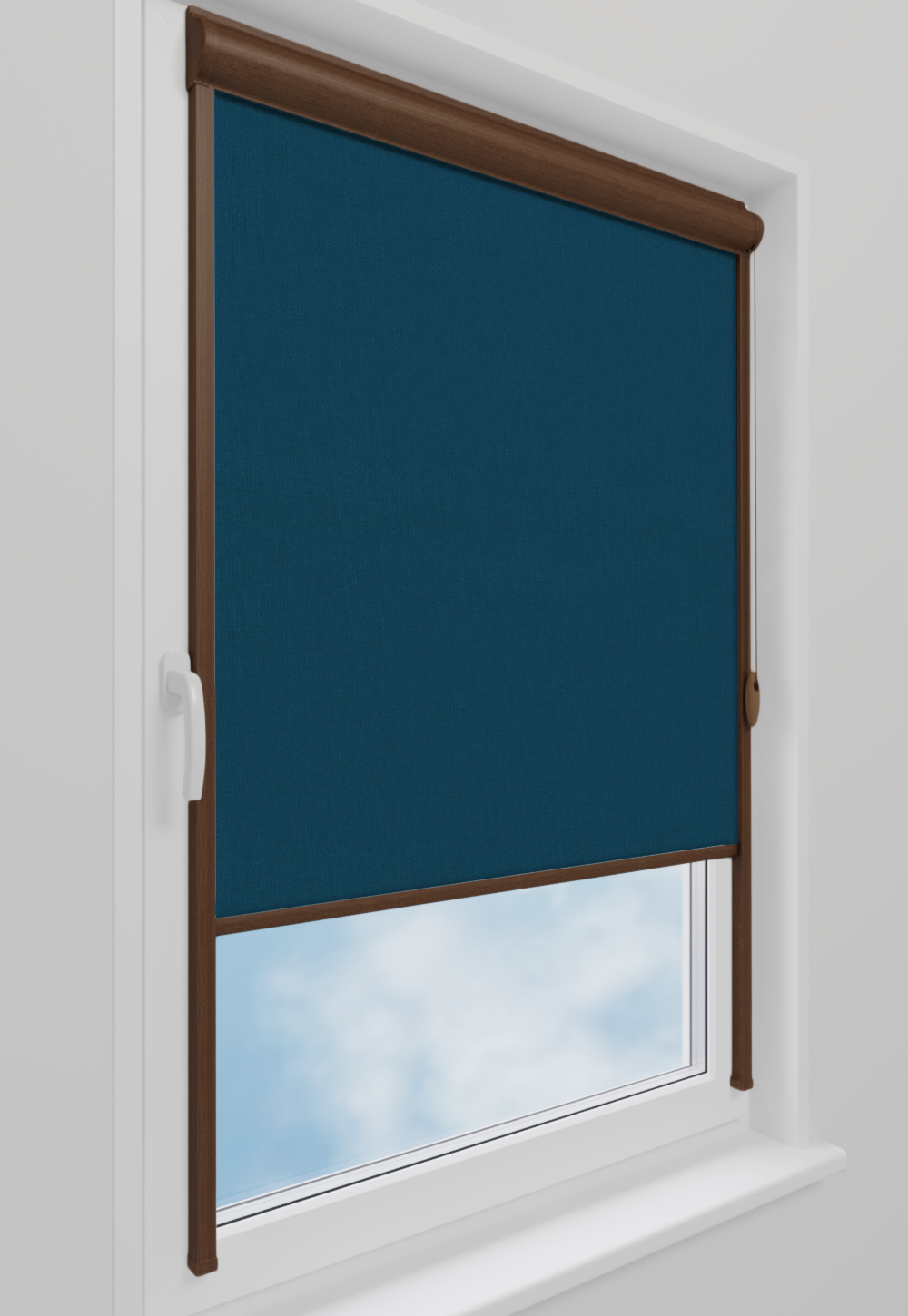 Roleta w kasecie LORD Tkanina Blackout 304 Niebieski gładki – kaseta orzech