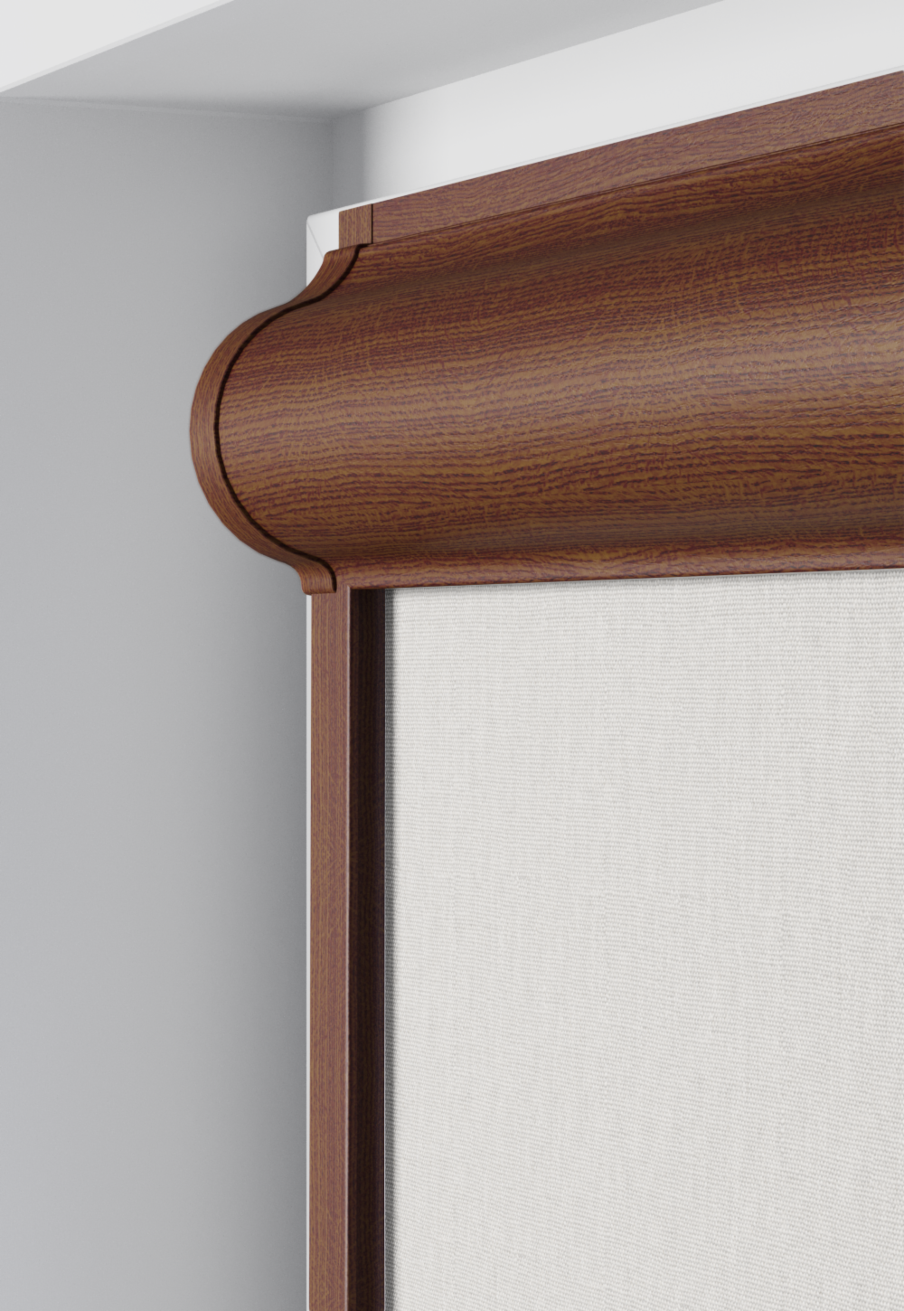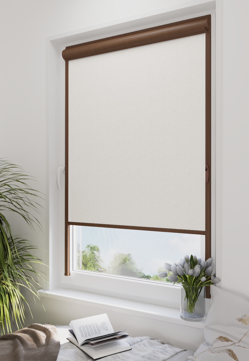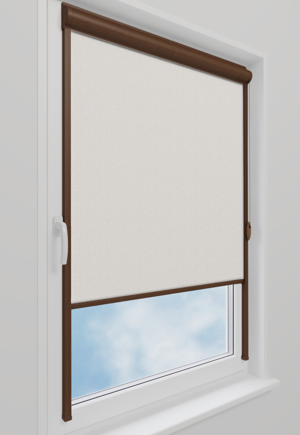 Roleta w kasecie LORD Tkanina Diego 0002 Biel Perłowa – kaseta orzech