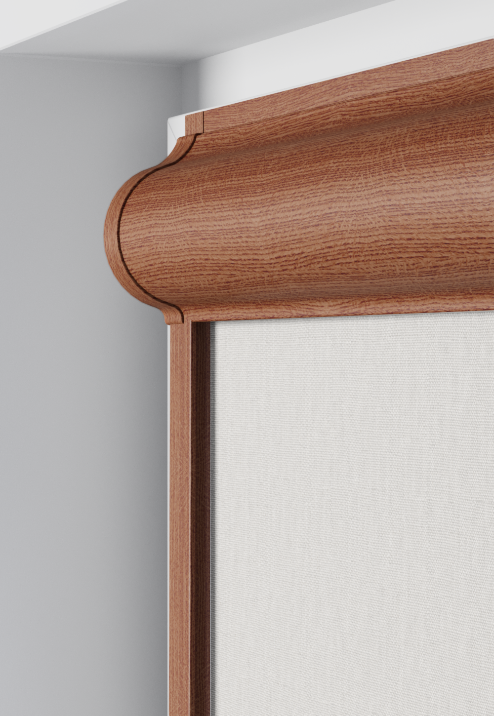Roleta w kasecie LORD Tkanina Diego 0002 Biel Perłowa – kaseta złoty dąb