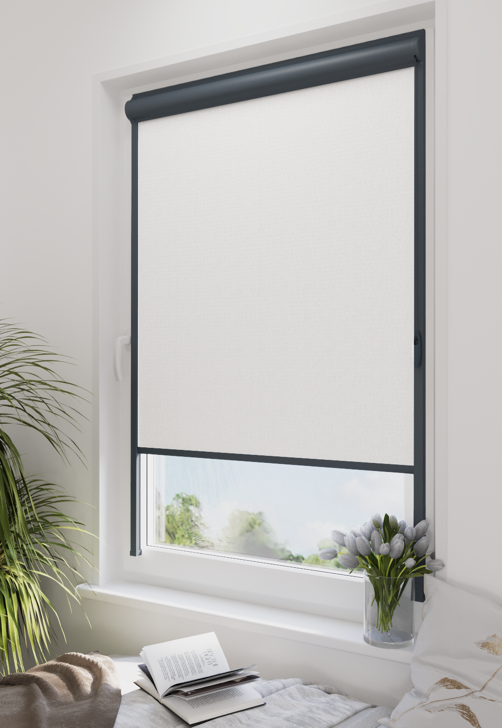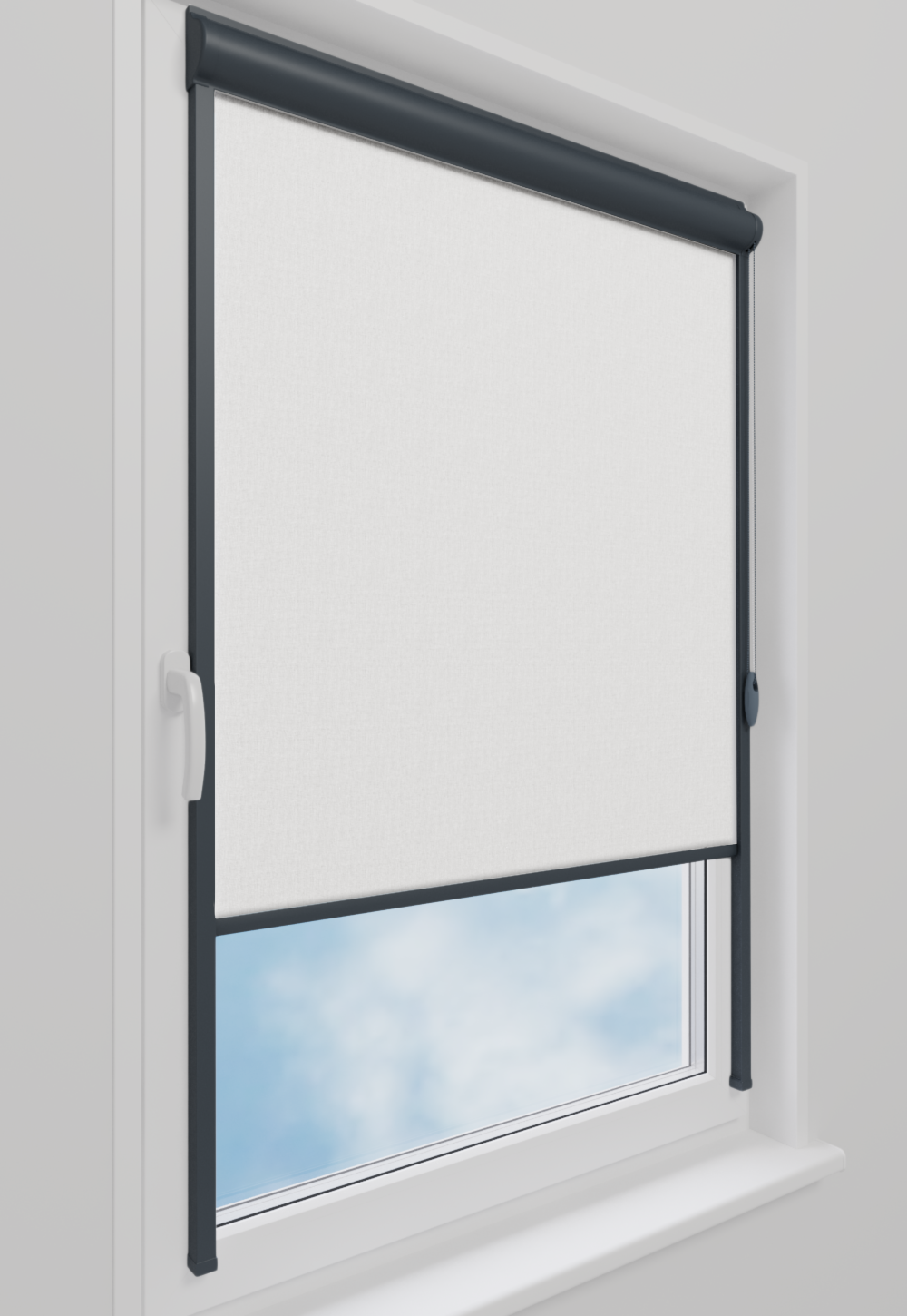 Roleta w kasecie LORD Tkanina Diego 0800 Czysta Biel – kaseta antracyt
