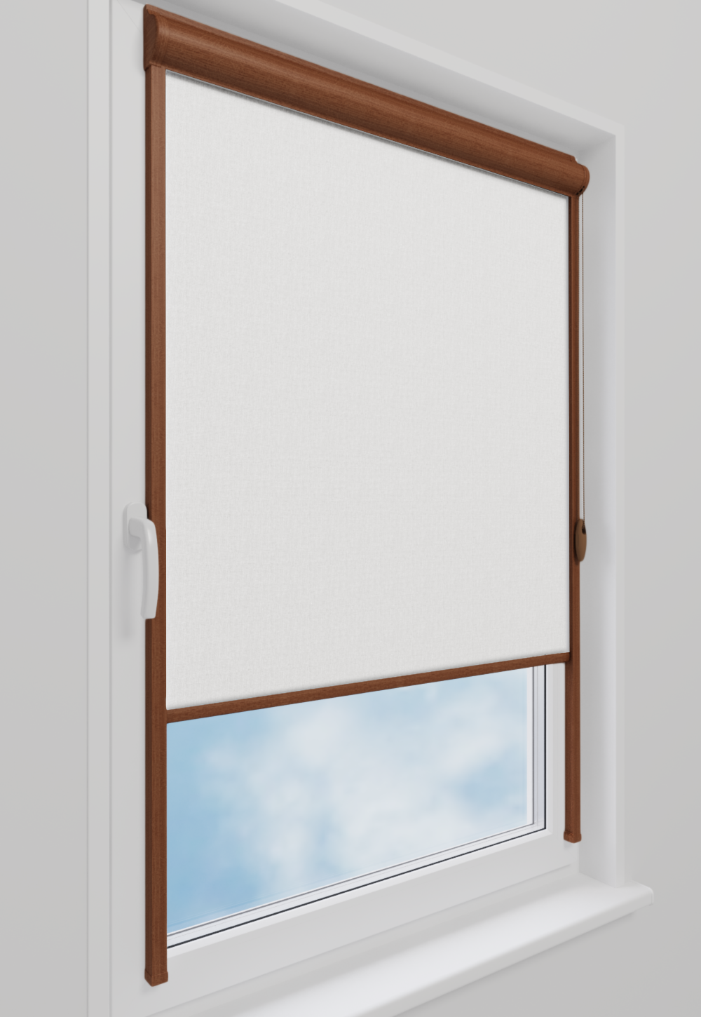 Roleta w kasecie LORD Tkanina Diego 0800 Czysta Biel – kaseta złoty dąb