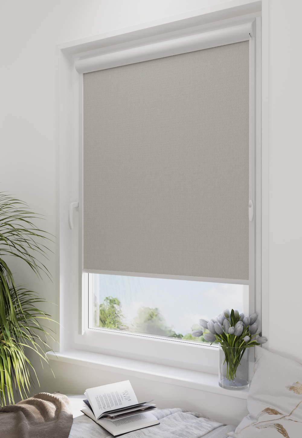 Roleta w kasecie LORD Tkanina Diego 522 Kamienna Szarość – kaseta biały