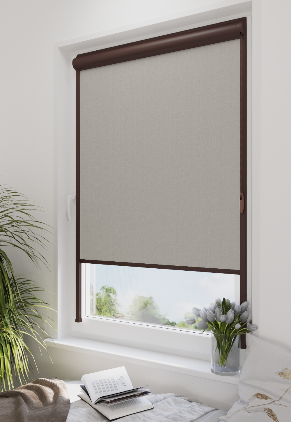 Roleta w kasecie LORD Tkanina Diego 522 Kamienna Szarość – kaseta brązowy