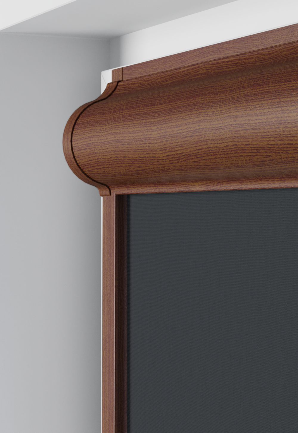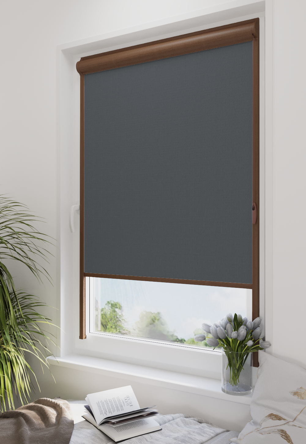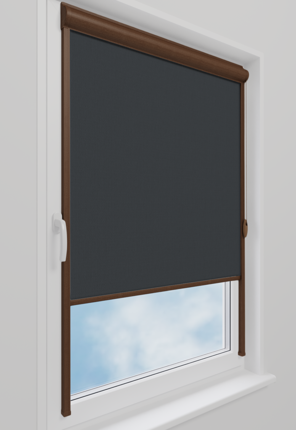 Roleta w kasecie LORD Tkanina Diego 5306 Ciemny Szary – kaseta orzech