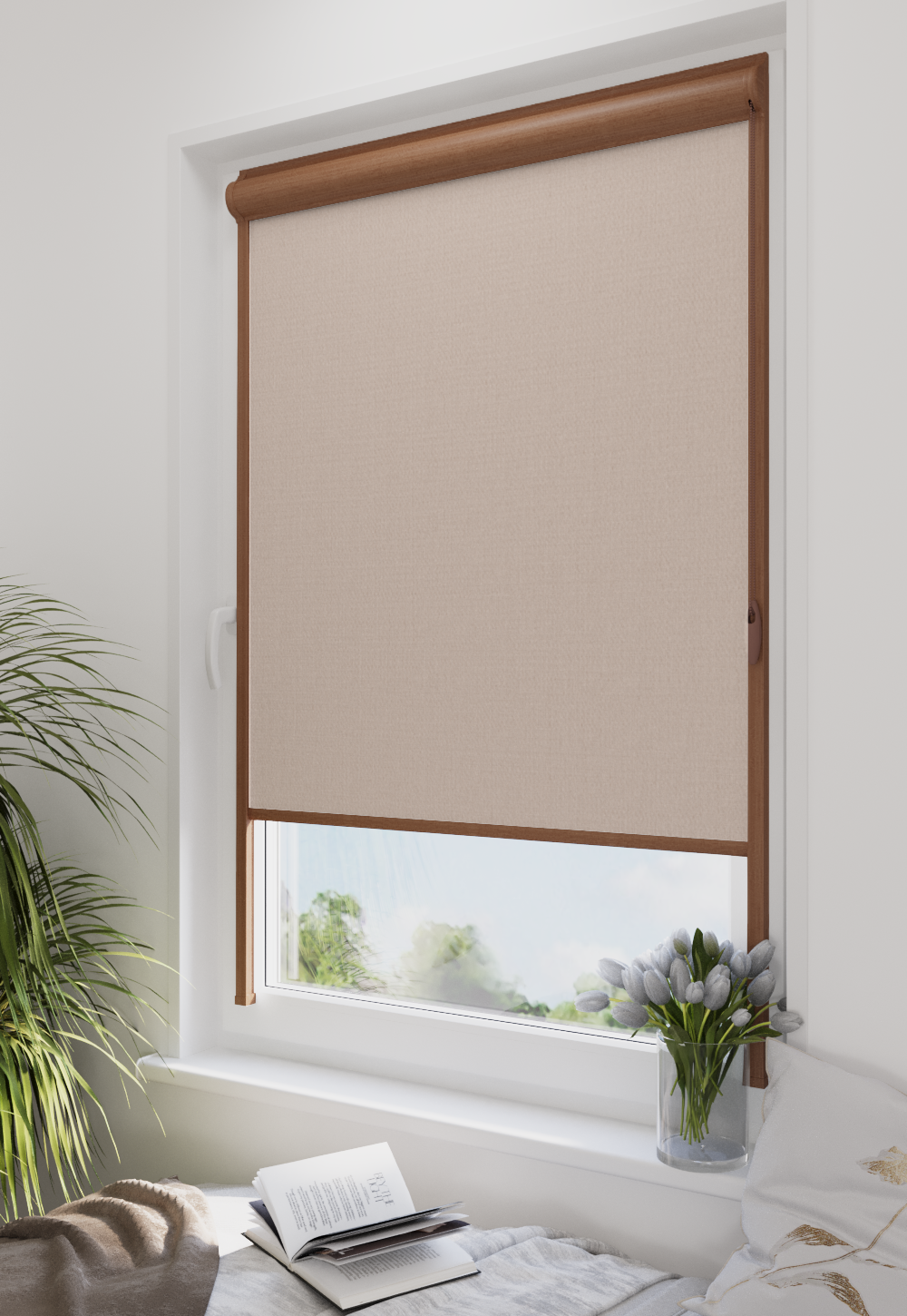 Roleta w kasecie LORD Tkanina Diego 5311 Jasny Róż – kaseta złoty dąb