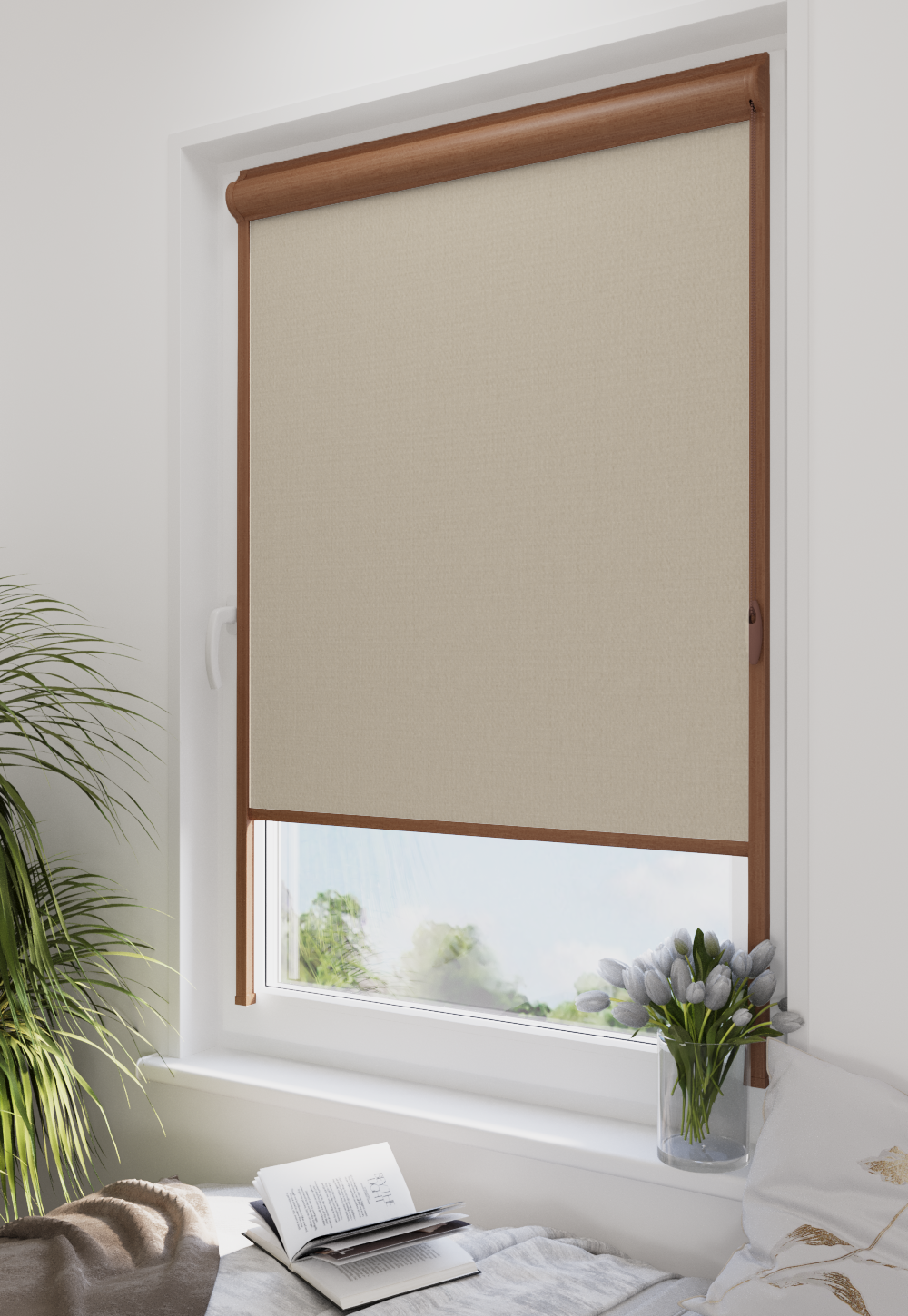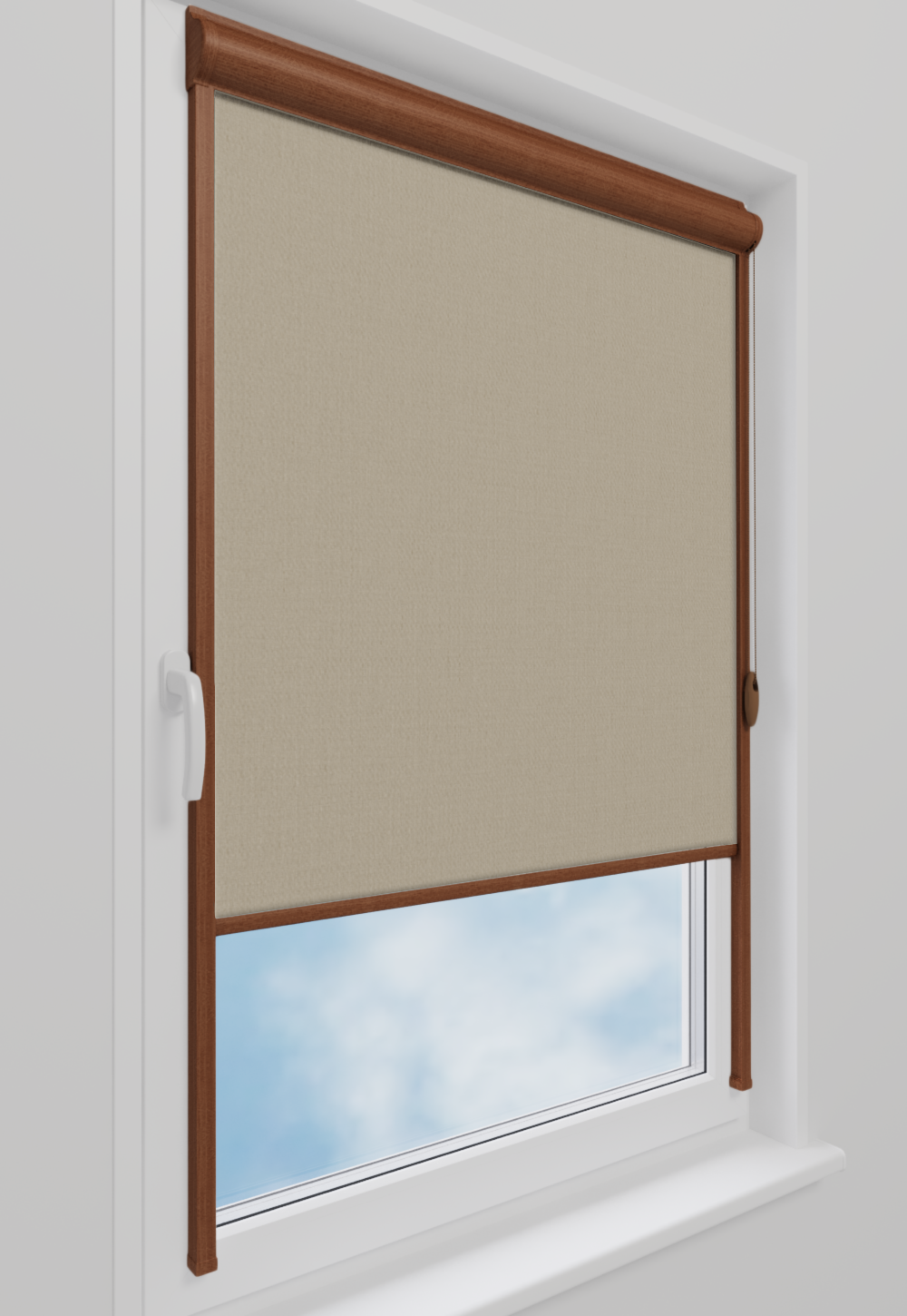 Roleta w kasecie LORD Tkanina Diego 555 Piaskowy Beż – kaseta złoty dąb