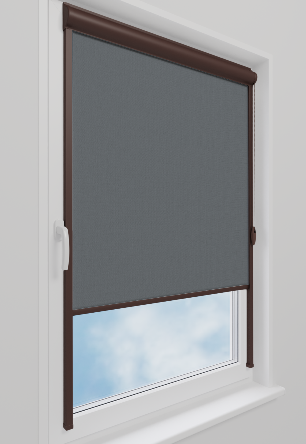 Roleta w kasecie LORD Tkanina Diego 669 Stalowy Szary – kaseta brązowy
