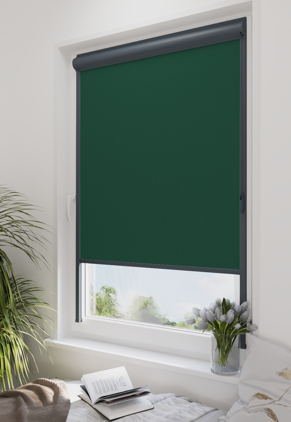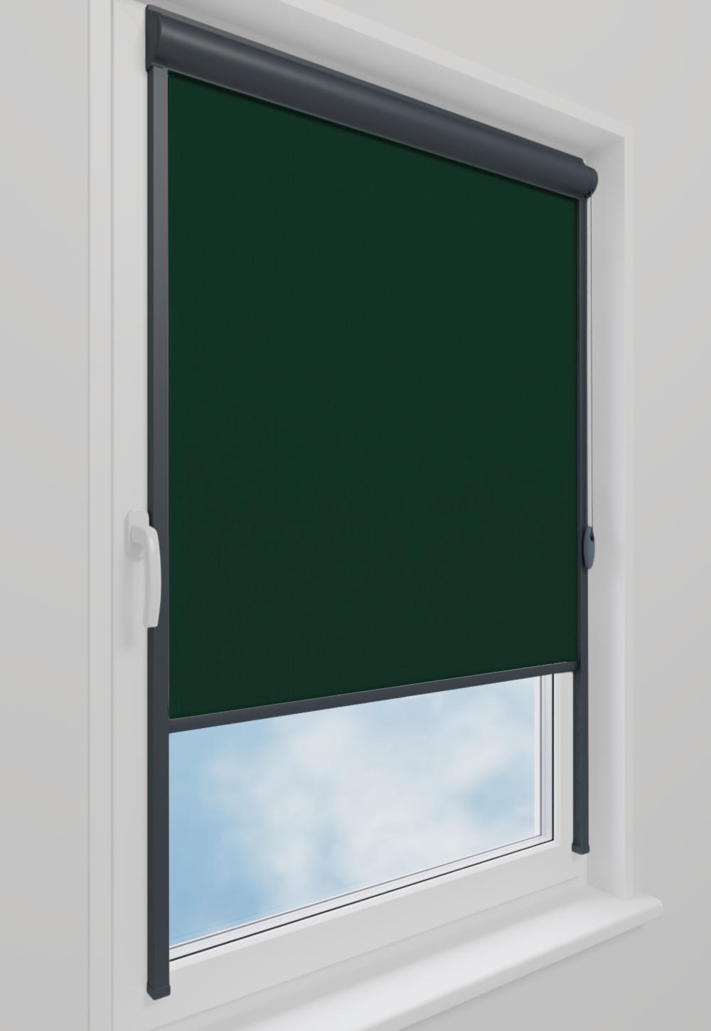 Roleta w kasecie LORD Tkanina Diego 674 Butelkowa Zieleń – kaseta antracyt