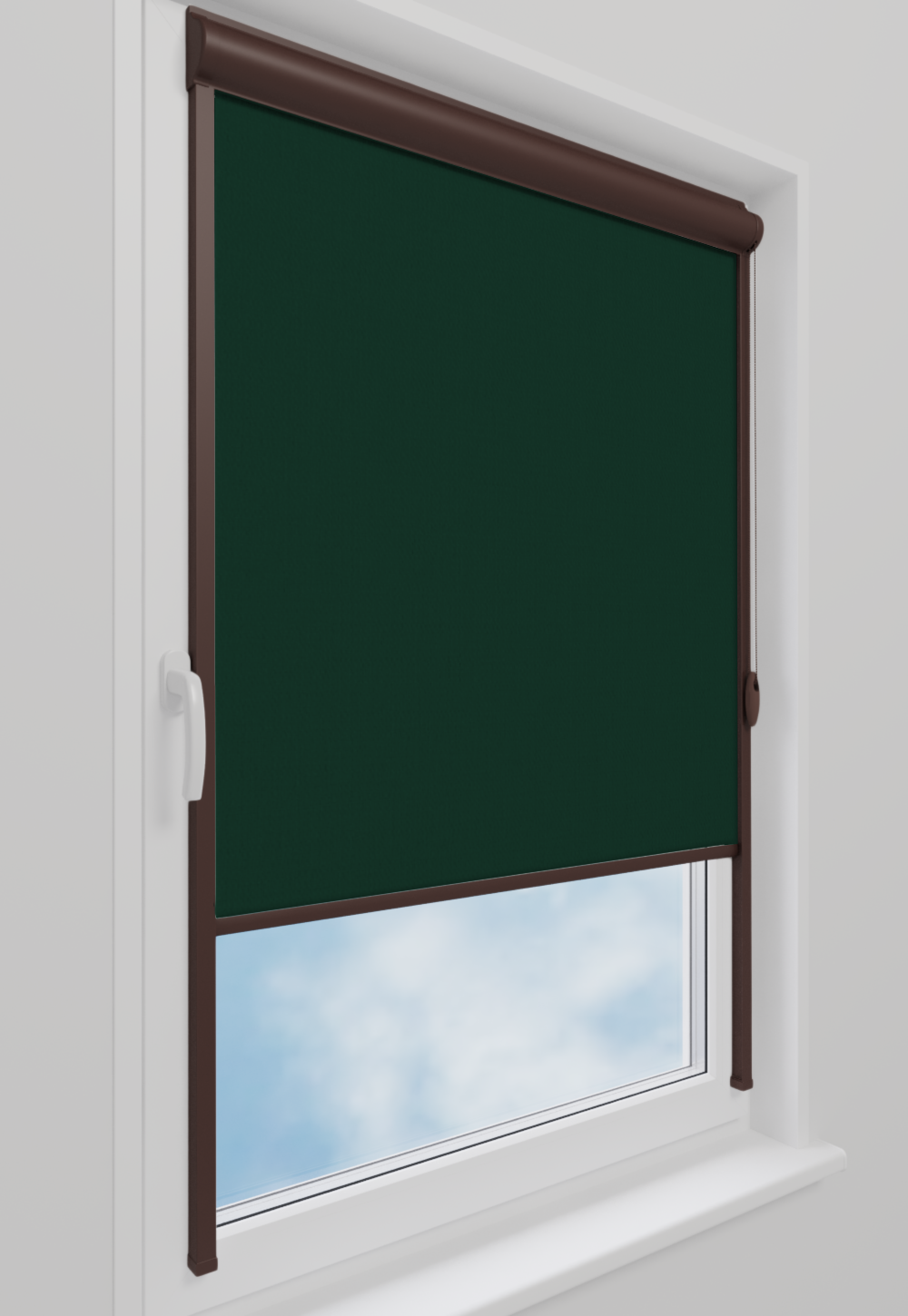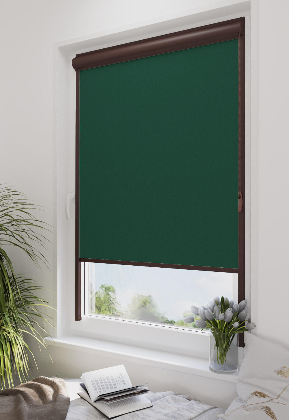 Roleta w kasecie LORD Tkanina Diego 674 Butelkowa Zieleń – kaseta brązowy