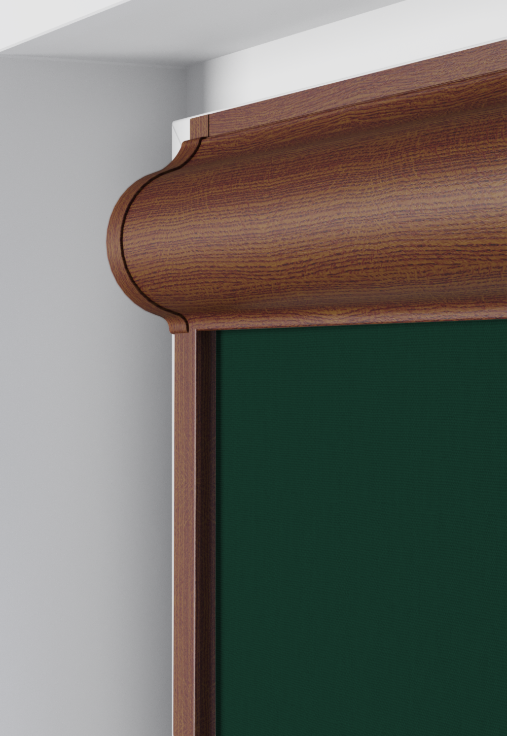 Roleta w kasecie LORD Tkanina Diego 674 Butelkowa Zieleń – kaseta orzech