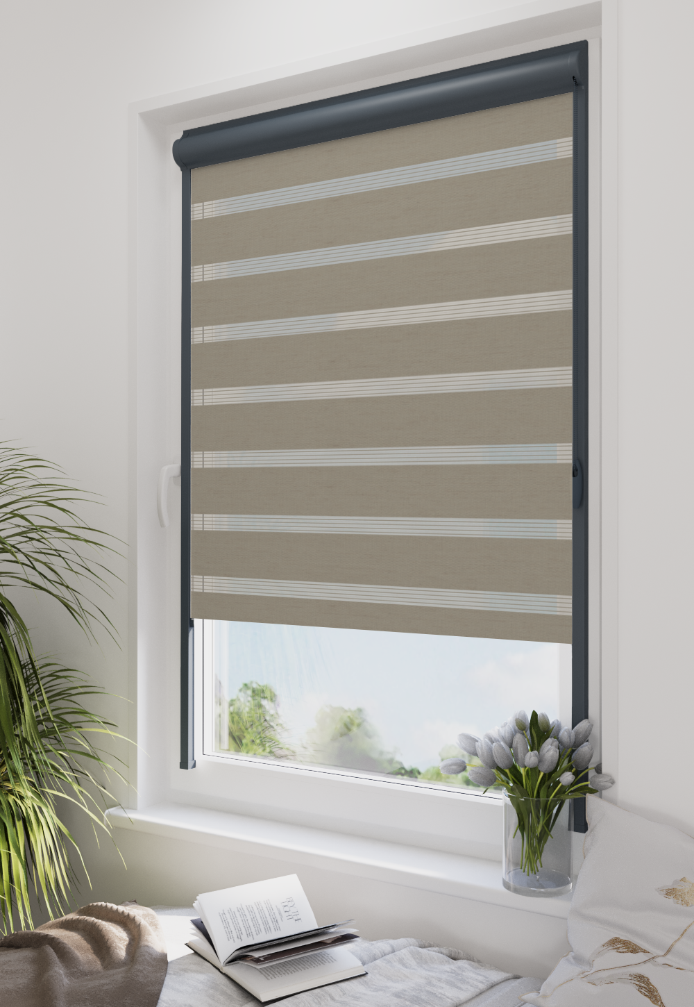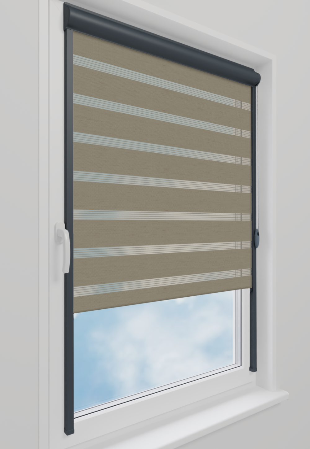 Roleta w kasecie LORD Tkanina Dzień Noc BH-1405 Szary Beż - kaseta antracyt