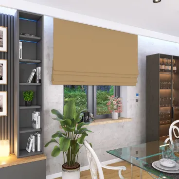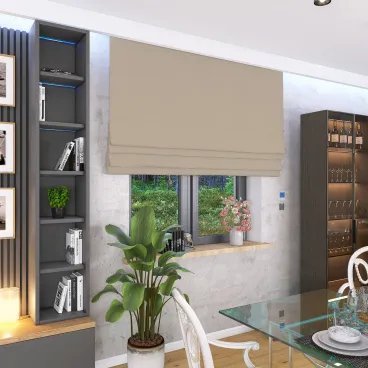 Velvet łatwo dopasować do aranżacji, ponieważ występuje w szerokiej palecie kolorów – od jasnych beży po głębokie, nasycone odcienie. Przy roletach rzymskich na wymiar welur pozwala uzyskać efekt dekoracji okna, która wygląda jak elegancka tkanina zasłonowa, a działa jak wygodna roleta.